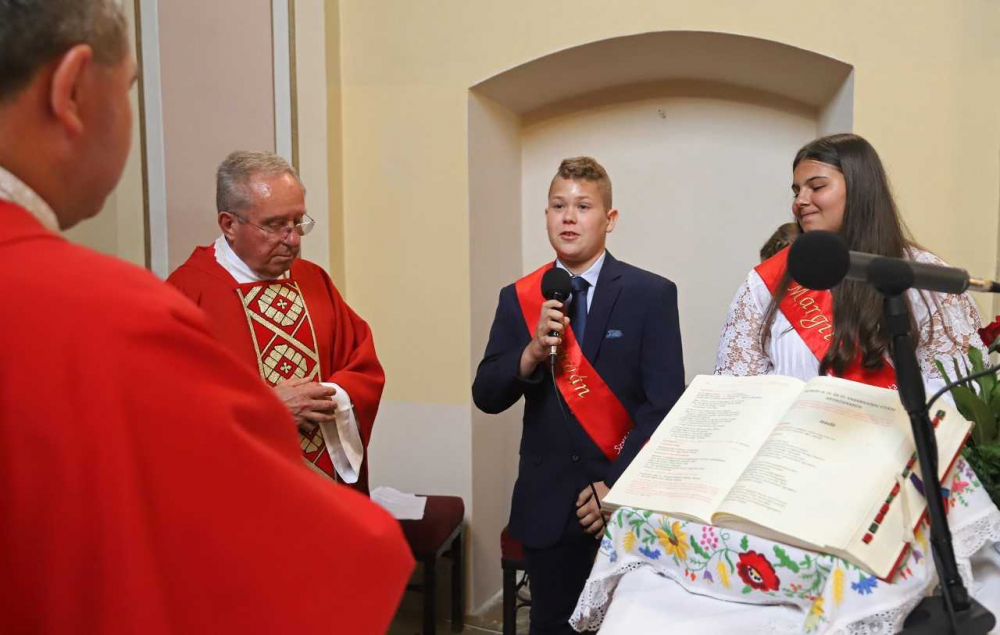 A szalántai fiatalokat a település plébánosa, Ronta László készítette fel az ünnepre, ami nem volt egyszerű, hiszen közülük négyen más-más pécsi iskolába járnak hittanórára, más-más szinten voltak a bérmálással kapcsolatos ismereteik.
