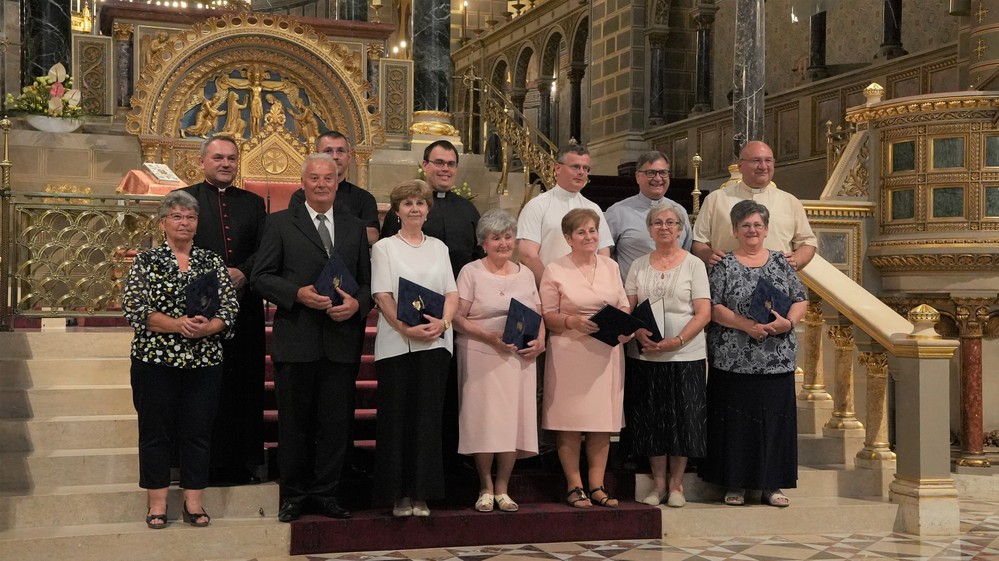 A főpásztor az egyházmegyei elismerésben idén részesülő híveket is méltatta beszédében: „Itt van velünk hét testvérünk, akik a maguk helyén, a maguk tudásával, áldozatával szolgálták Krisztus egyházát, az egyházközségeiket. Én is tanúja voltam papi életemben, egy-egy testvér töretlen hitének, láttam a végtelen alázattal végzett szolgálatát. Nem tudjuk eléggé megköszönni ezt a szolgálatot. De nagyon büszkék vagyunk rájuk. Sok-sok ember hite, szeretete épül ezekre a szolgálatokra. Nagyon köszönöm a plébános atyáknak, hogy látva és megtapasztalva az önök szolgálatát, igent mondtak arra, hogy ebben a formában is mondjuk érte köszönetet, mert önök példák, értékek, kincsek az élő egyházban. A jövőben, ahogy a múltban is, az alázatos szívű, Istent feltétlenül szolgáló, az egyházközségben, a közösségben szolgáló hívekre és szívekre van szükségünk.