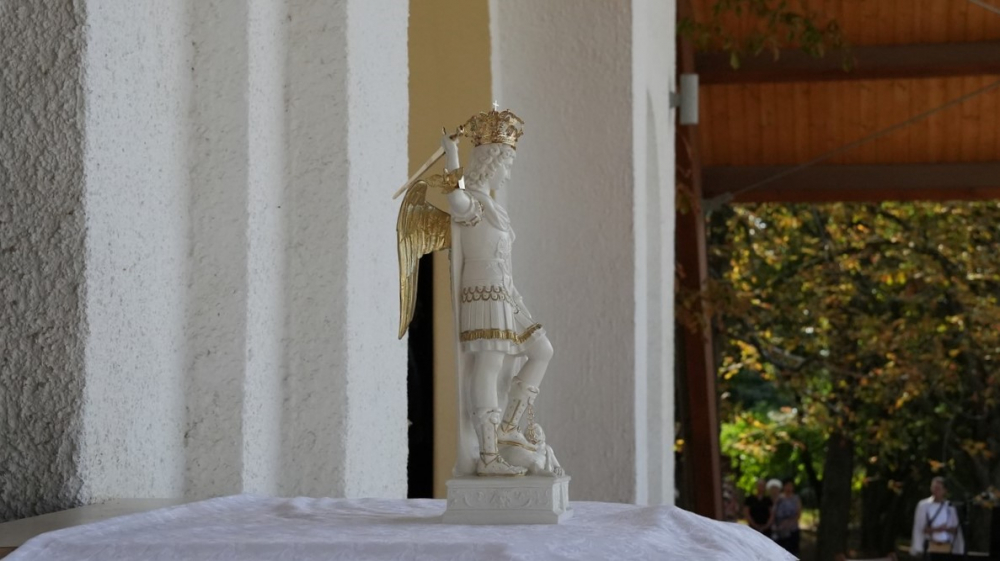 Szent Mihály főangyalt ábrázoló szoborral gazdagodott a máriagyűdi kegyhely. A Sarlós Boldogasszony-kegytemplom Szent Mihály-kápolnájában elhelyezett kegytárgyat Ocsovai Grácián ferences szerzetes hozta ajándékul, aki a Nagyboldogasszony-ünnep alkalmából tartott főbúcsún, augusztus 14-én volt a kegyhelyen bemutatott ünnepi szentmise meghívott szónoka.