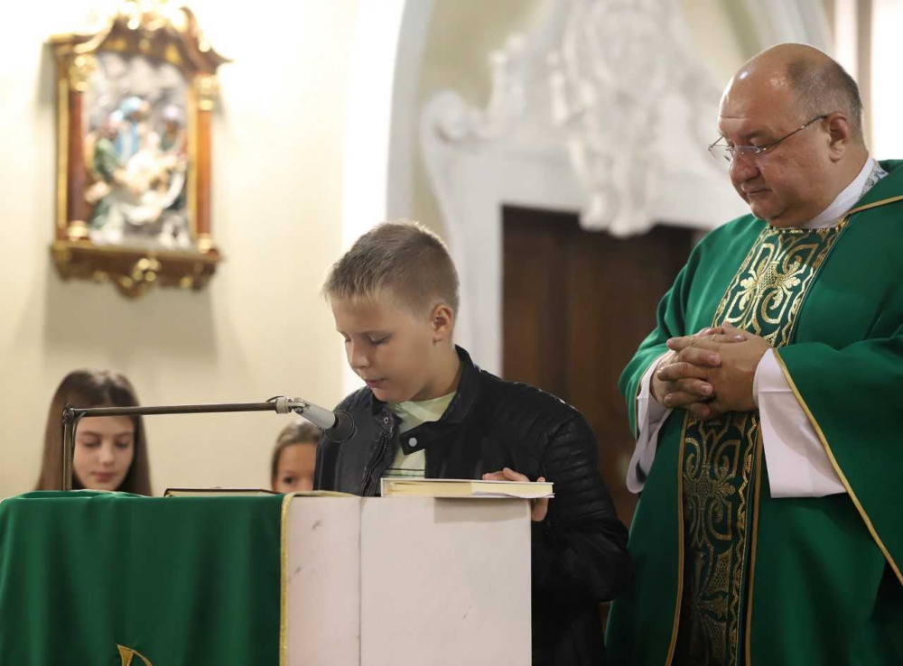 A szentmisében a gyermekek vállalták az olvasás szolgálatát, köztük az egyetemes könyörgéseket is, melyre Tomola Ágnes hitoktató készítette fel őket.
