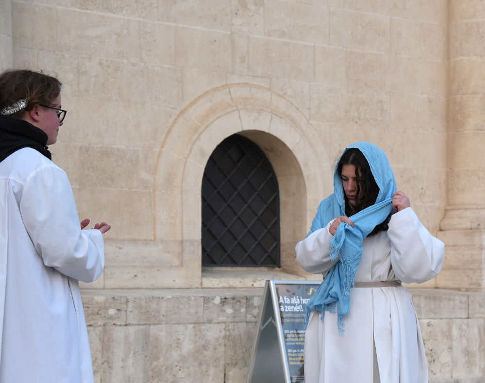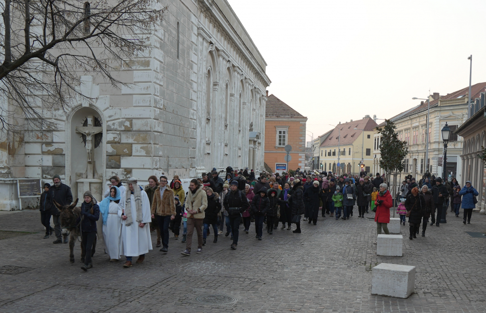 Szállást keres a Szent Család című adventi ájtatosságban a júdeai Betlehemben szállást kereső Mária és József alakja elevenedett meg. A szereplők a Magtár Látogatóközponttól Felföldi László megyéspüspök főpásztori áldásával indultak útnak. A rövid séta során három állomáshelyen, a székesegyház déli kapujánál, a ferences templomnál és a Széchenyi téren a Szentírásból vett részletekkel idézték fel a Krisztus születése éjszakáján történteket.