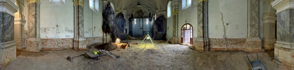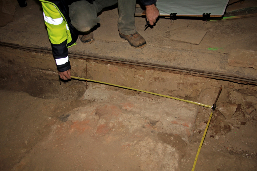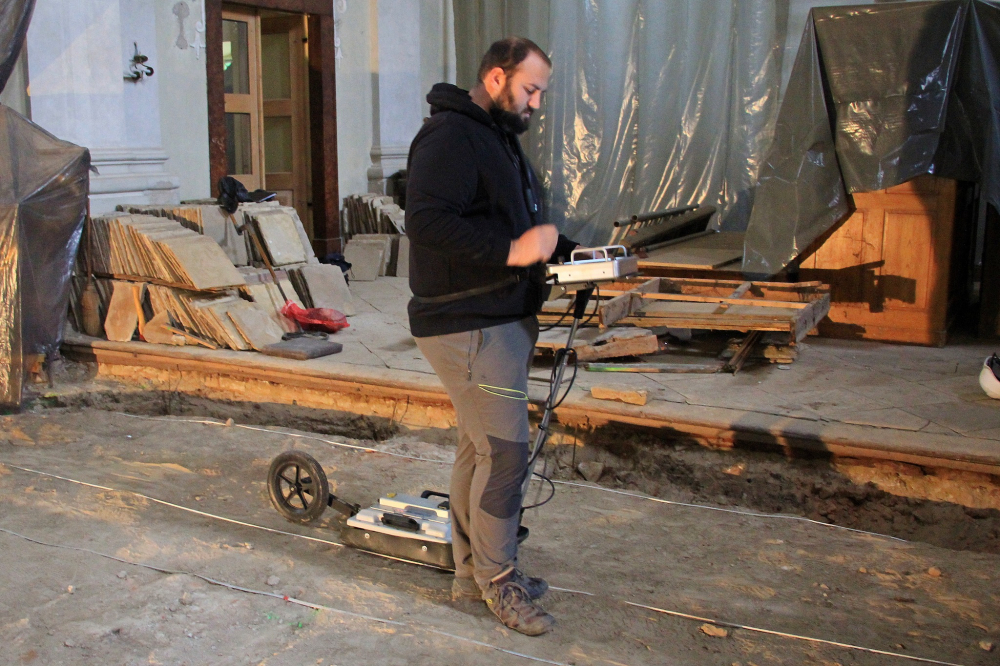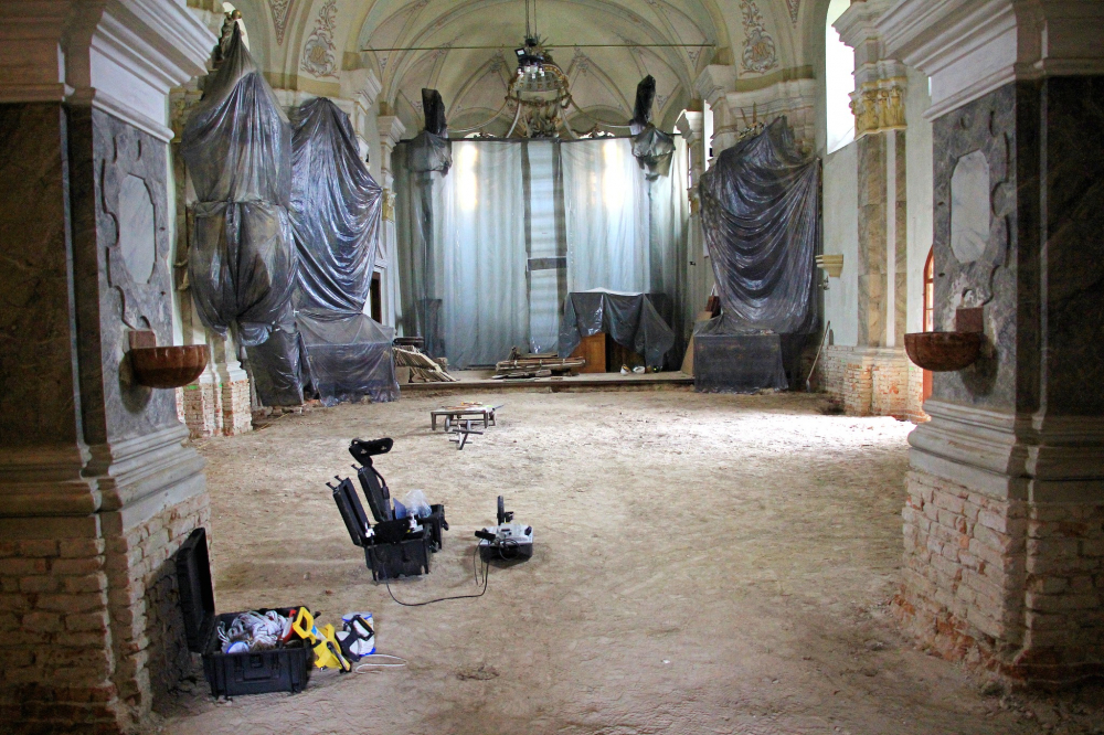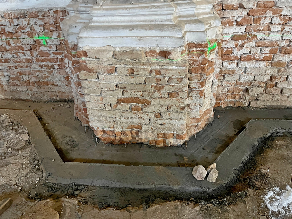 Felszedték és elbontották az épület teljes padlóburkolatát és aljzatát, ezzel párhuzamosan megkezdődött a leendő új padozat síkjának kialakítása, szintezése, a süllyedések kiegyenlítése. A külső körítő főfalak mentén betonozott kábelcsatornát és páradiffúziós árkot alakítottak ki. A belső lábazat cementvakolatát eltávolították, ahol villanyszerelési munkák falkábeleit helyezték el az engedélyezett örökségvédelmi terv szerint.