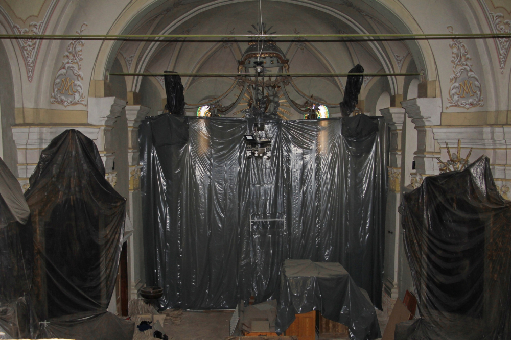 A munkálatok első szakaszában restaurálás céljából elbontották a templomi padokat, a karzat apácarács borítását, elszállították a templomtér szobrait, gyóntatószékeit. Elbontották és a Pécsi Orgonakészítő Manufaktúrába szállították az orgonát, melynek frontjai és sípjainak restaurálása az örökségvédelmi engedély előírásai szerint megkezdődött.