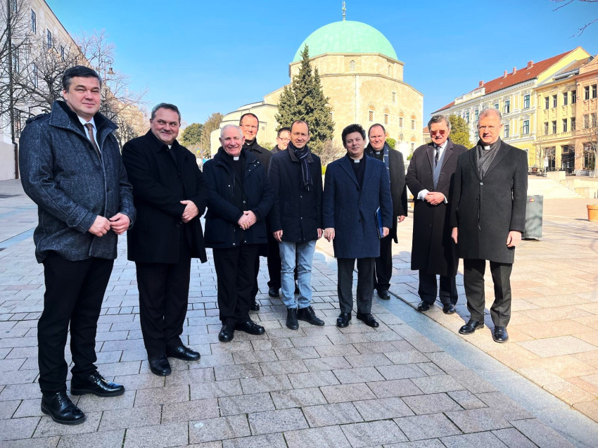 Londoni egyházi méltóságok – Paul McAleenan westminsteri segédpüspök, Michael Dunne, a westminsteri érsekség kanonoka és gróf Hadik András, a brit Máltai Lovagrend tagja – tettek látogatást február 13. és 17. között hazánk több városában, köztük Pécsett is. Az utazást Csicsó János angliai magyar főlelkész, pécsi egyházmegyei pap szervezte, aki beszámolót készített a látogatásról, melyet a Magyar Kurír közölt. Az alábbiakban a beszámoló pécsi vonatkozásának részletét adjuk közre.