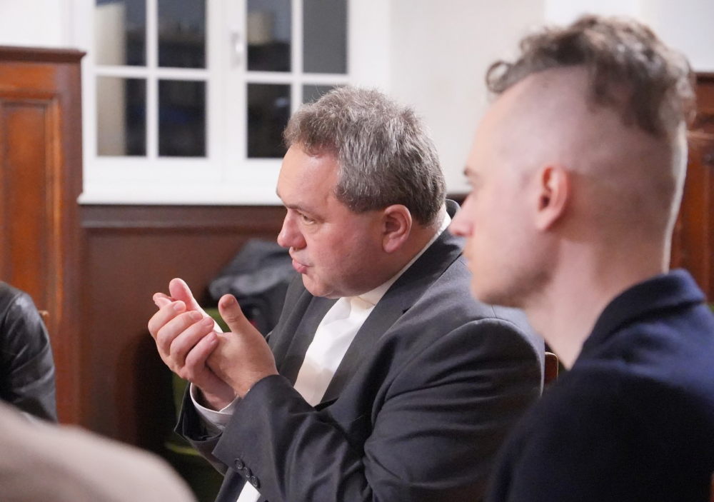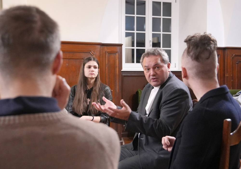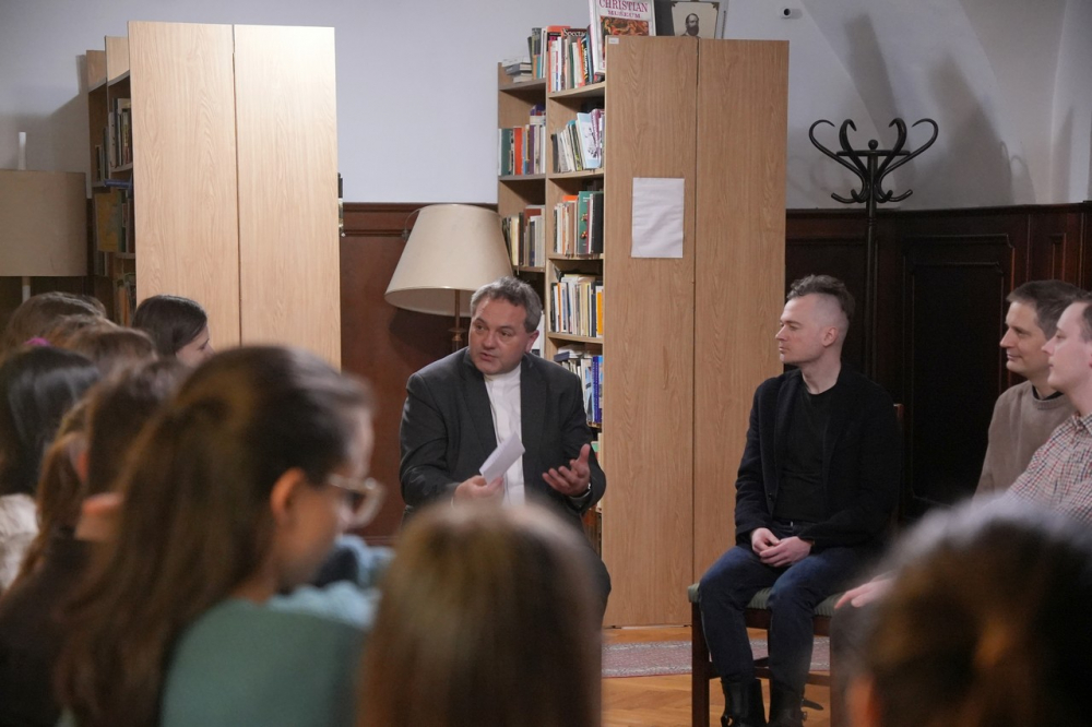 A kötetelen beszélgetés elején bevezetőjében a főpásztor a sziklára épített ház (Mt 7,24-27) példázatából kiindulva azt hangsúlyozta, hogy a teljes élet alapja az emberi megalapozottságból fakad. A püspök kiemelte, sem világiként sem papként, sem házasként, sem egyedül élőként nem lehetséges kiállni az élet viharait abban az esetben, ha a test, a szellem és a lélek egységében nem áll szilárdan. Jézus a fenti példabeszédben nem csupán lehetőségként említi a vihart érkezését. A vihar jönni fog minden ember életében, ez nem kérdés. Amikor pedig ránk zúdul, minden erőnkre és felkészültségünkre szükségünk lesz, hogy el ne söpörjön bennünket.