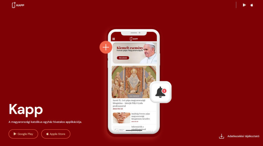 Az applikáció – mely a pápalátogatást követően is frissülni fog – weblapja, amely segíti a letöltést: kapp.hu