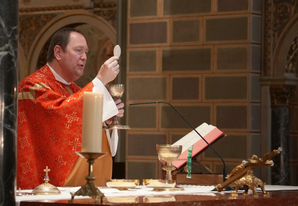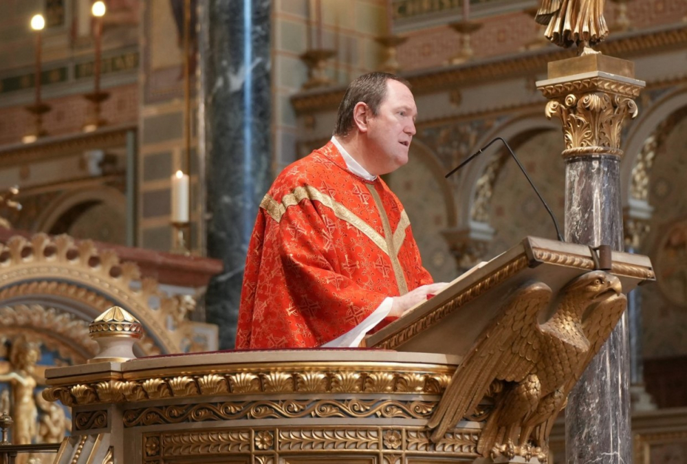 A szentmise homíliájában Szép Attila kiemelte, a pünkösdöt megelőző napok szentmiséinek olvasmányai több ízben szóltak arról, hogy Krisztusnak az a szándéka, hogy tanítványai és a szavukra tanítvánnyá váló testvérek között egyetértés, egység legyen. Olyan egység, amilyen az Atya és a Fiú között van. A pünkösdvasárnapi ünnepnek több olvasmányai is ugyanennek az egység iránti vágyról szólnak. Különböző nyelvű emberek újra megértik egymást, a néptől elzárkózott apostolok bátorságot kapnak, már egymásra sem néznek úgy, mintha a másik is áruló lenne, és elérkezik a pillanat, amikor Krisztussal is szembe tudnak nézni.