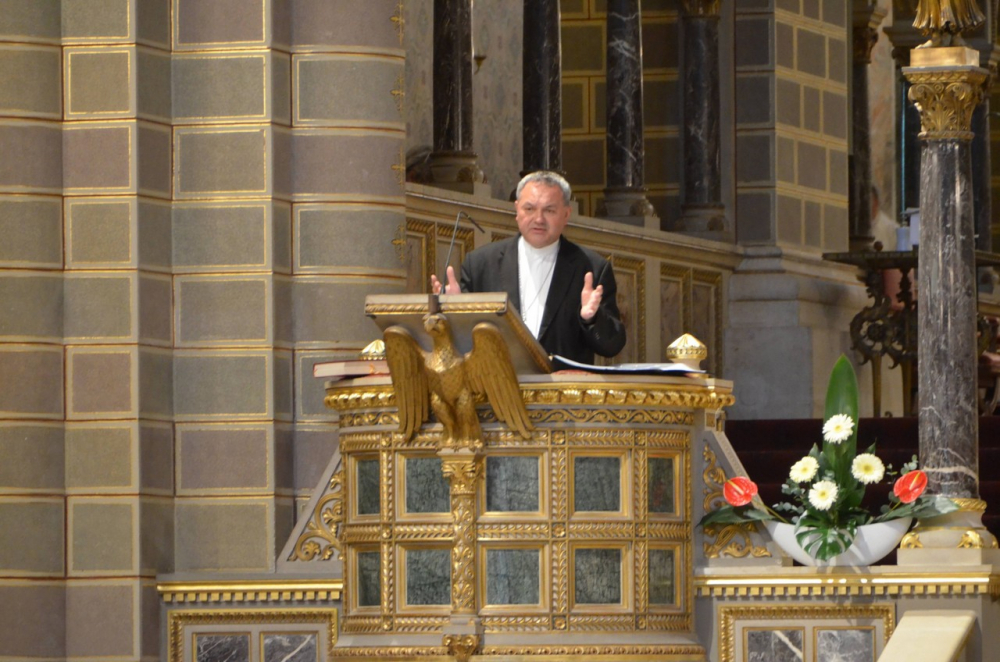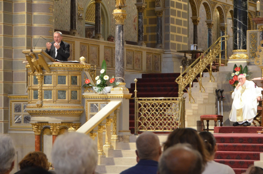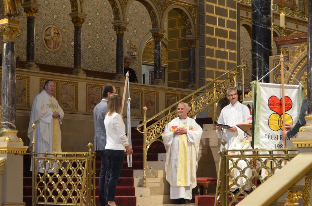 Az évfordulós alkalomhoz kapcsolódó szentmise elején Bíró László nyugalmazott tábori püspök, a Magyar Katolikus Püspöki Konferencia Családügyi Bizottságának 1994-2020-ig elnöke megáldotta a Házas Hétvége Pécsi Régió új zászlaját. Szentbeszédében felelevenítette a 35 éves Pécsi Régió történeti kezdeteit, melynek szereplői közül többen személyesen is jelen voltak. A Szentháromság vasárnapjának házaspároknak szóló üzenetéről szólva Bíró László a bizánci ikonokra jellemző megjelenítő emlékezésre hívta fel a figyelmet.