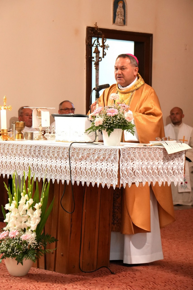 A búcsúi szentmise homíliájában Felföldi László megyéspüspök a 110 évvel ezelőtt élt elődökre emlékezett, akik a templomépítéssel az egymást erősítő közösségépítés mellett döntöttek, hogy megtalálják családjaiknak, egyházközségi közösségüknek az életét, értelmét és a gazdagságát.