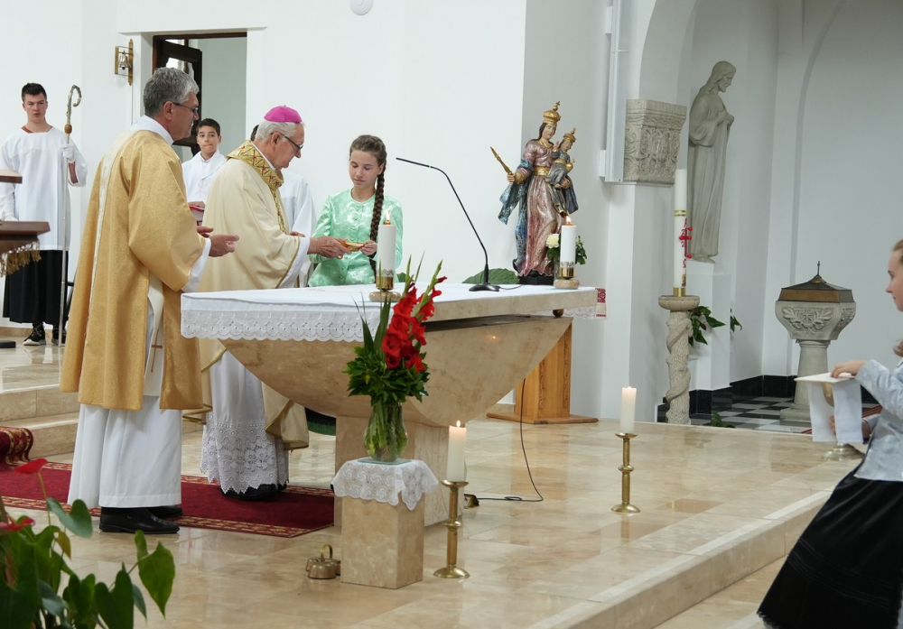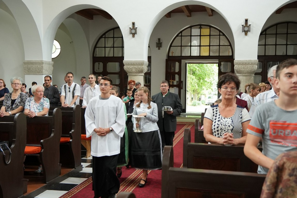 Még Mohácsról is érkeztek hívek a csaknem három éve bazilika rangra emelt bátai kegytemplomba, hogy részt vegyenek a német nemzetiségi búcsú szentmiséjén. Az ünnepélyes bevonulást követően Mayer Mihály nyugalmazott püspök német nyelven is köszöntötte az egybegyűlteket. Hasonlóképpen az olvasmányok és az evangélium is elhangzott mind németül, mind pedig magyar nyelven.