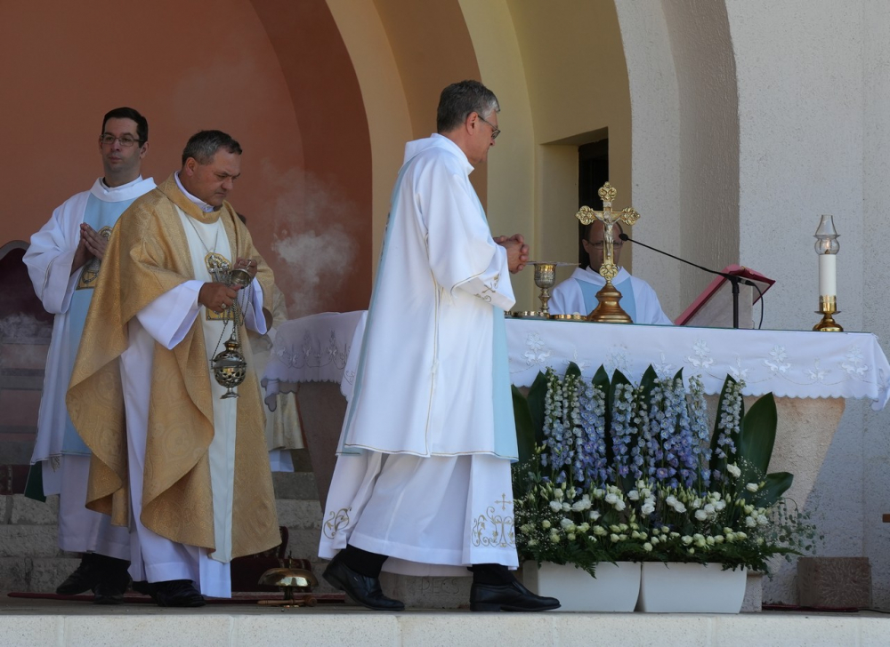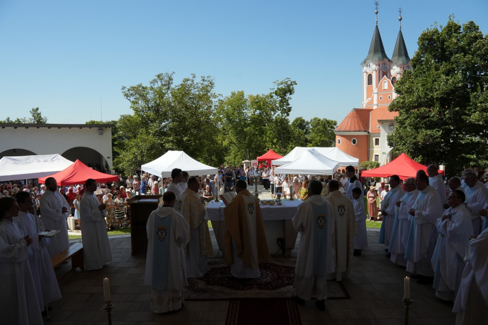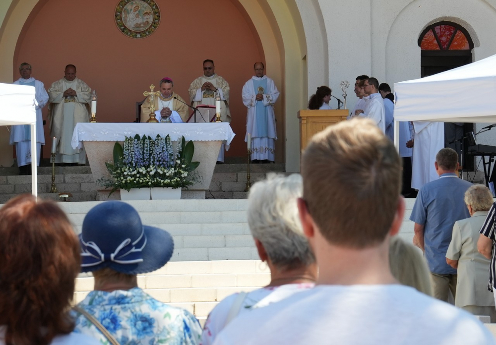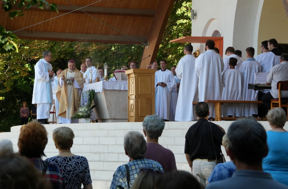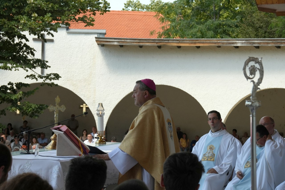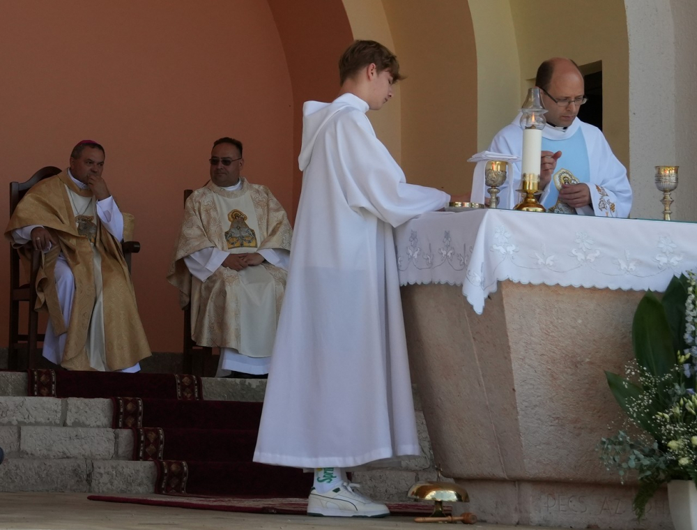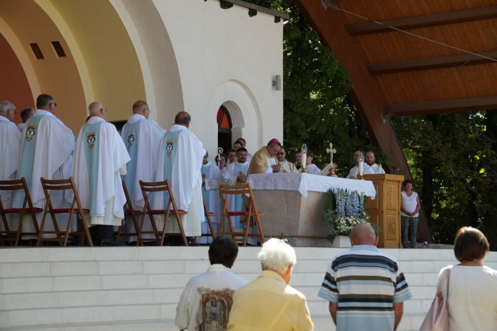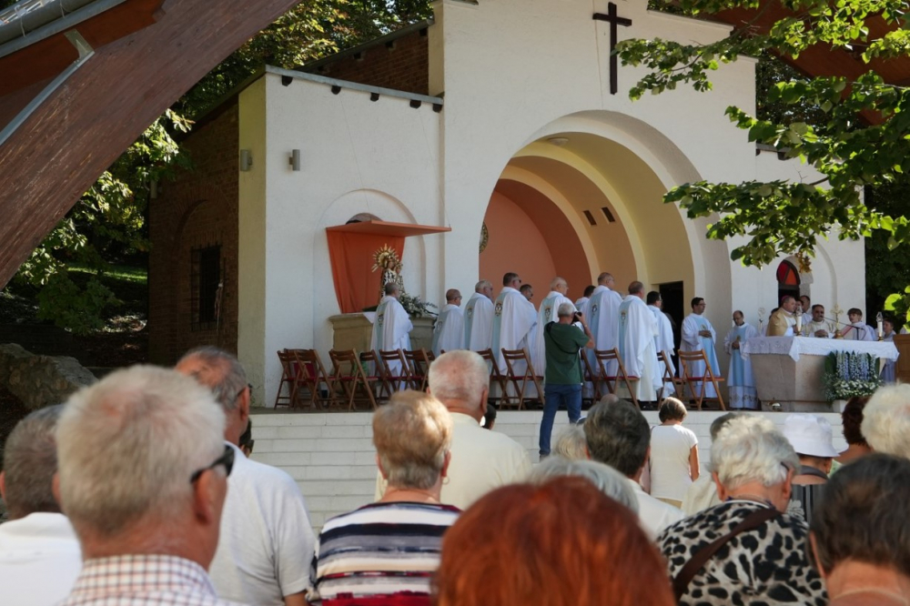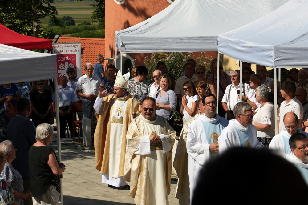 Nagyboldogasszony ünnepe hagyományosan a Pécsi Egyházmegye fogadalmi búcsúja, egyben a máriagyűdi kegyhely főbúcsúja. Az idén három napon át - augusztus 12-én és 13-án, valamint augusztus 15-én, az ünnep napján - tartó programsorozat első napján Felföldi László pécsi megyéspüspök celebrált ünnepi szentmisét az egyházmegye papjaival a zsúfolásig megtelt kegyhely szabadtéri oltáránál. A liturgia szónoka Keresztes Andor, a kegyhely Sarlós Boldogasszony-kegytemplomának plébánosa volt.