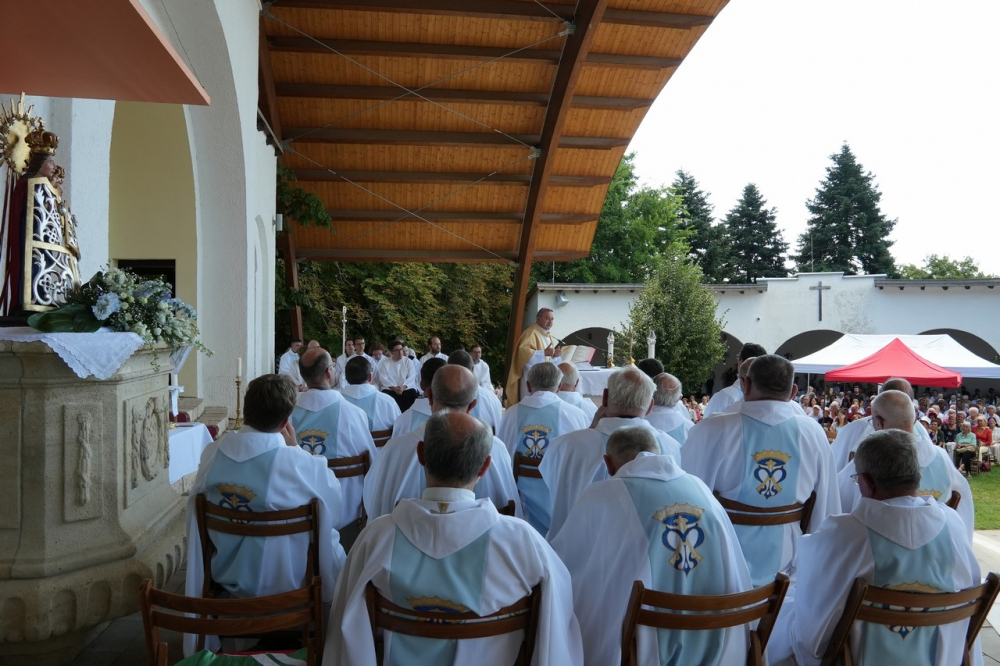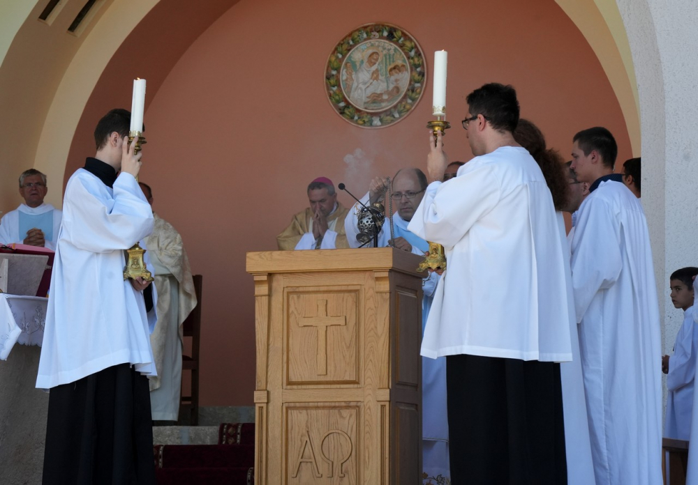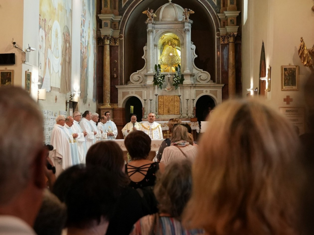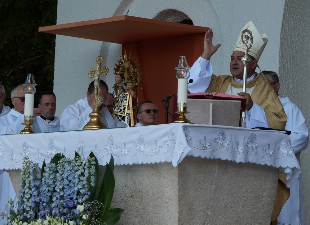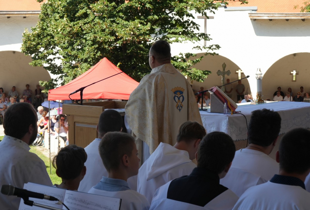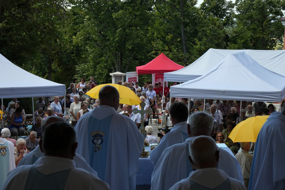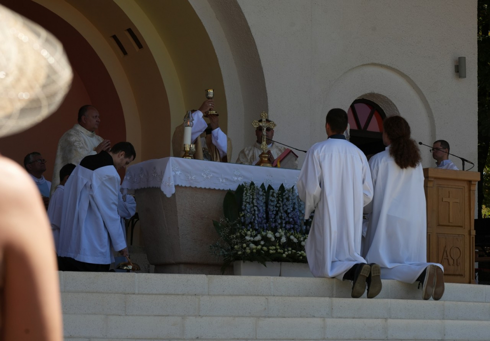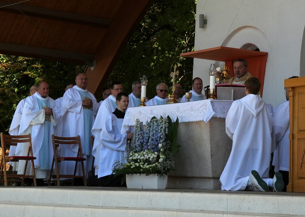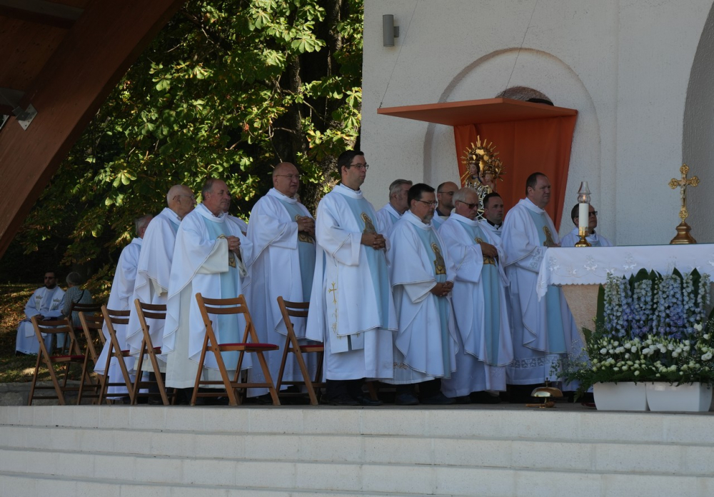 Nagyboldogasszony ünnepe hagyományosan a Pécsi Egyházmegye fogadalmi búcsúja, egyben a máriagyűdi kegyhely főbúcsúja. Az idén három napon át - augusztus 12-én és 13-án, valamint augusztus 15-én, az ünnep napján - tartó programsorozat első napján Felföldi László pécsi megyéspüspök celebrált ünnepi szentmisét az egyházmegye papjaival a zsúfolásig megtelt kegyhely szabadtéri oltáránál. A liturgia szónoka Keresztes Andor, a kegyhely Sarlós Boldogasszony-kegytemplomának plébánosa volt.