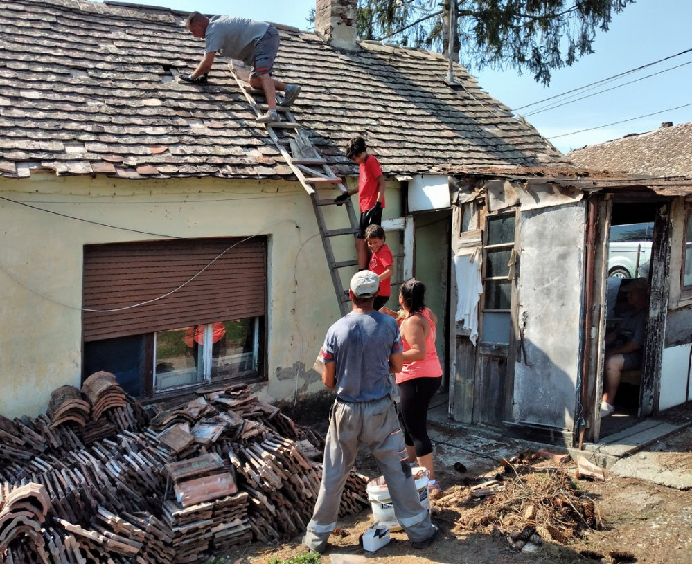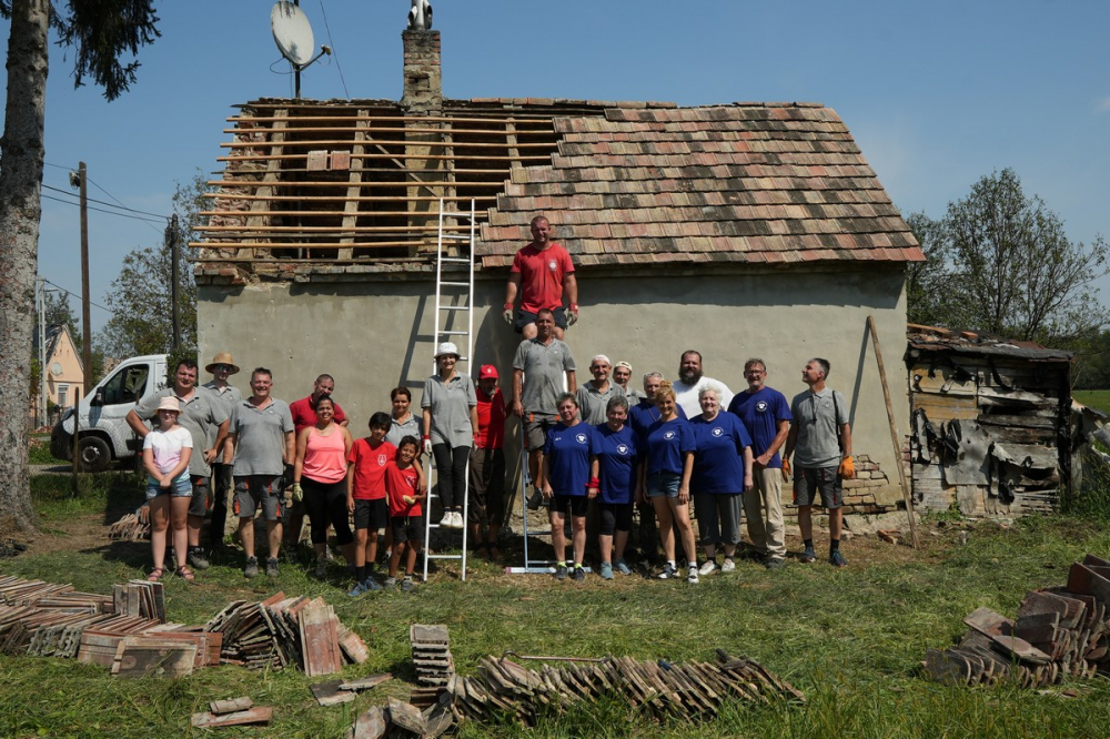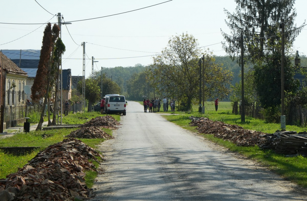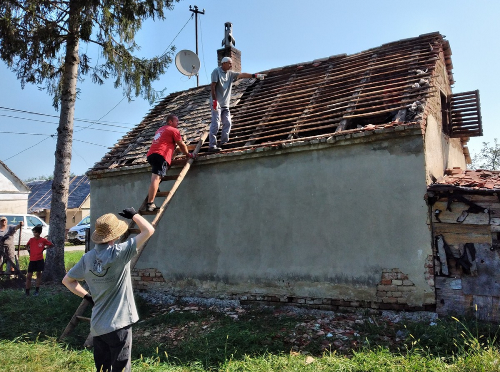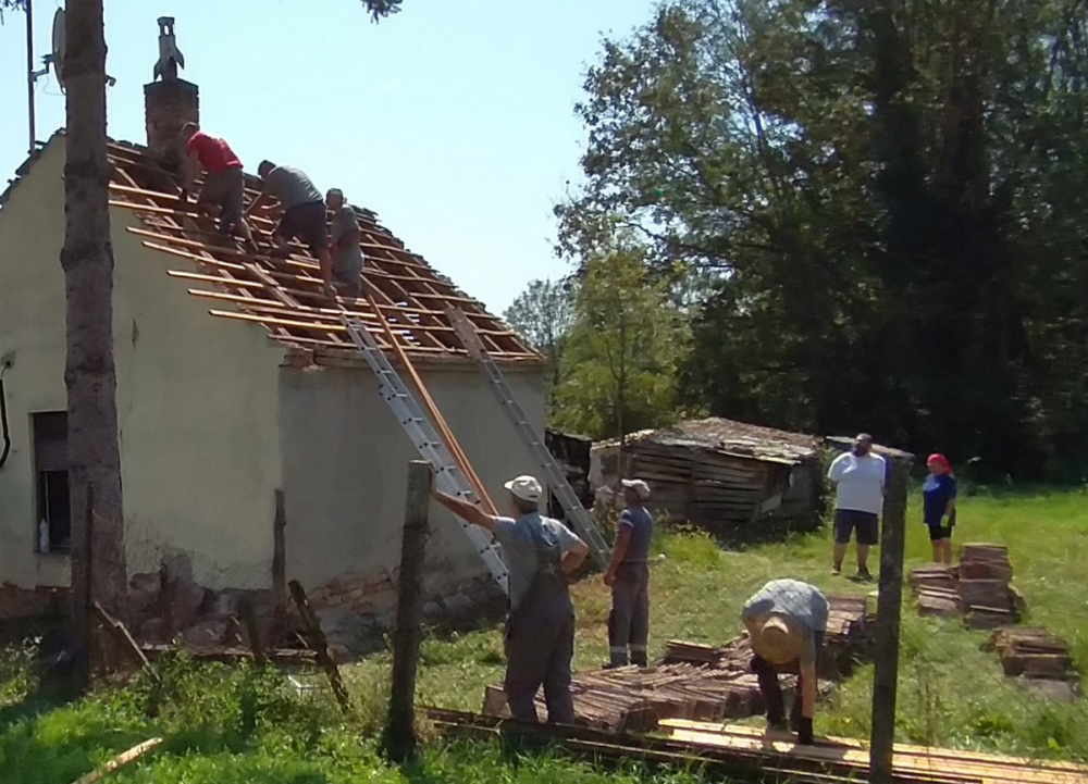 Szabadidejük terhére mintegy huszonnégyen vettek részt a munkában. A Józsi bácsi portájával szemközti ház lakója is részt vállalt a segítségnyújtásban, jóllehet a saját háza tetejének javításával még nem készült még el, ami jól mutatja a falu lakóinak összefogását a bajban. A tetőlécek cseréjének ideje alatt, amibe kevesen tudtak csak egyszerre bekapcsolódni, például egy másik ház udvaráról hordták ki az önkéntesek a ripityára tört cserepeket az út menti árok partjára, ahol már hetek óta gyűlik a törmelék. A Pécsi Egyházmegye szakácsának, Varga Attilának a jóvoltából ízletes babgulyással csillapíthatták éhségüket az önkéntesek. A Művelődési Házban elköltött ebéd Berta Jenőné polgármesternek köszönhetően finom desszerttel is kiegészült.