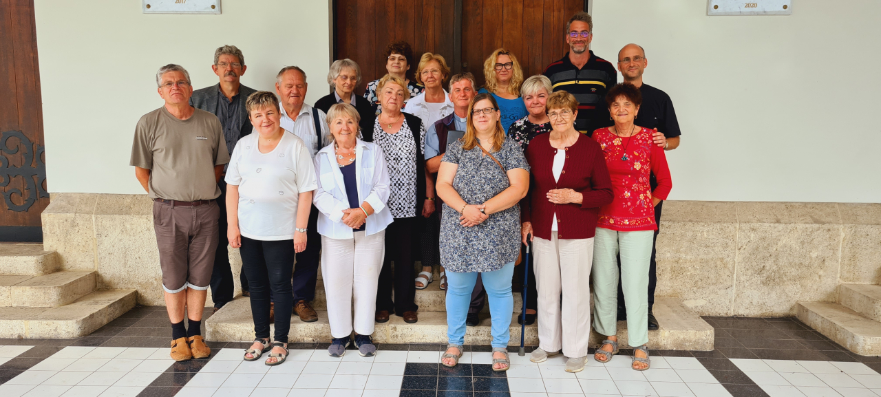 Sokunk gondolja úgy, hogy nagyon hamar eltelt ez a néhány nap. Még maradnánk. Ma befejeztük a Filippieknek szóló levelet. Elmélkedhettünk is, sőt Sümegi József, a házigazdánk ma be tudta fejezni a korábbi napok egyikén elkezdett előadását a templom történetéről. Az előző alkalommal már túljutottunk a középkor vérzivataros századain, most elértünk a II. világháborúig. Már áll a templom, de a háború miatt akadoznak a belső munkák. Még egy feszület is kellene a szentélybe, az oltár feletti falra. Ezt Olaszországból rendelték meg. Vasúton fog megjönni — tudatták az építőkkel — Bátaszéken kell majd átrakni a báta-pécsi vonalra.