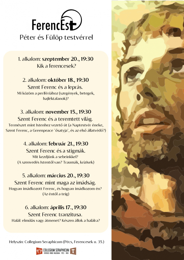 A FerencEstek nyitottak, minden érdeklődő egyetemistát szeretettel várnak rá a kollégium előadótermében. A részletekről további információk a Collegium Seraphicum közösségi oldalain találhatók.