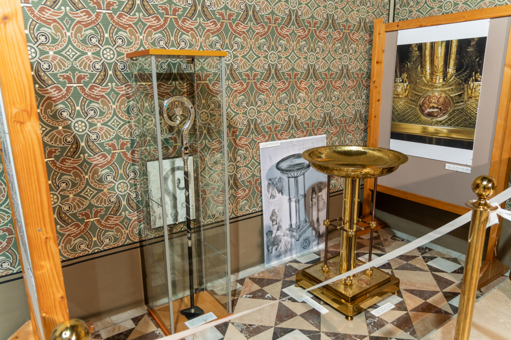 A kiállításon keresztelőmedence, körmeneti kereszt, misekönyv borítója, püspöki pásztorbot, talpas keresztek, gyertyatartók, díszpersely, falikarok láthatók, melyek képet adnak arról a művészetről, melyet Serbakow Tibor munkássága képvisel. A tárlaton az ötvösmunkák előzetes grafikai tervei is megtekinthetők, mert koncepció, hogy nem csak a műveket kívánják bemutatni, hanem azt a szellemi-alkotói folyamatot is, amelyben megszületett egy-egy alkotás.