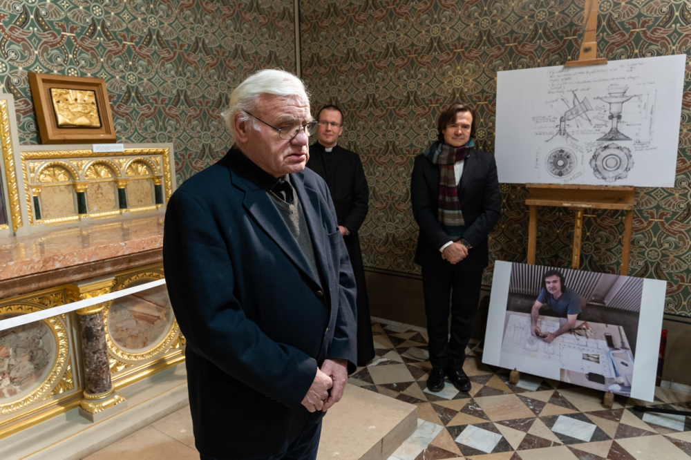 A kiállítás ünnepi megnyitóján Máger Róbert püspöki irodaigazgató, a székesegyház plébánosa köszöntőjében kifejezte örömét, hogy Bátaszék és Báta után immár a Pécsi Egyházmegye székesegyházában is bemutatásra kerülnek az Egyház és a templomok mindennapjaiban kiemelt szerepet betöltő liturgikus ötvöstárgyak, melyek az ötvösművész által láttatott módon segítenek abban, hogy még jobban megértsük a liturgia mélységét és gazdagságát.