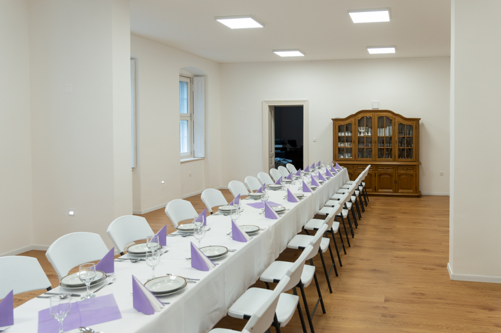 A munkálatok során két helyiség összenyitásával kialakítottak egy korszerű, közösségi teret, egy irodát és egy vendégszobát, de természetszerűleg a plébániaépületben kapott helyet a plébános lakrésze is.