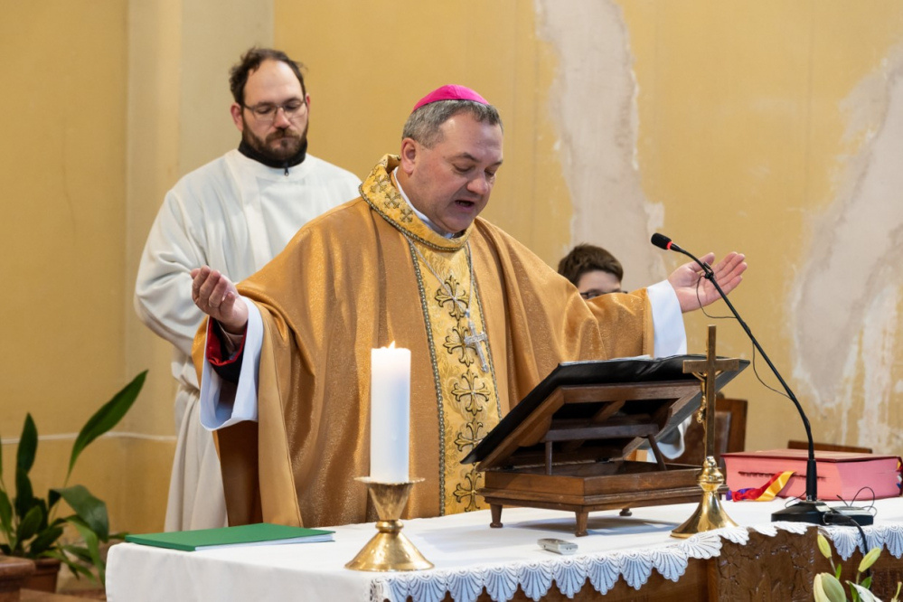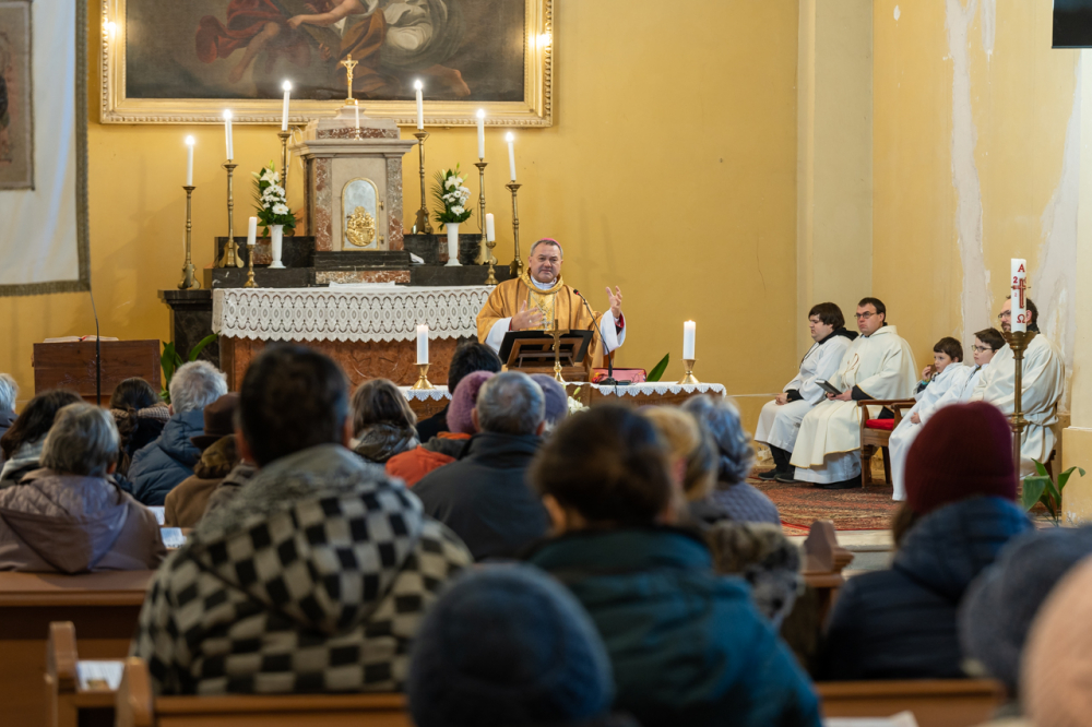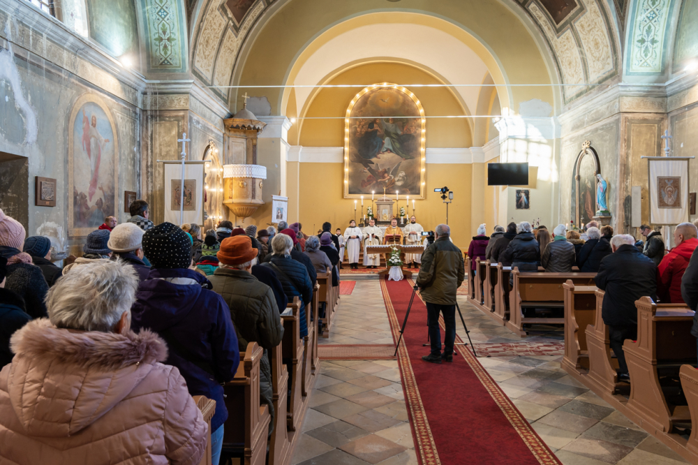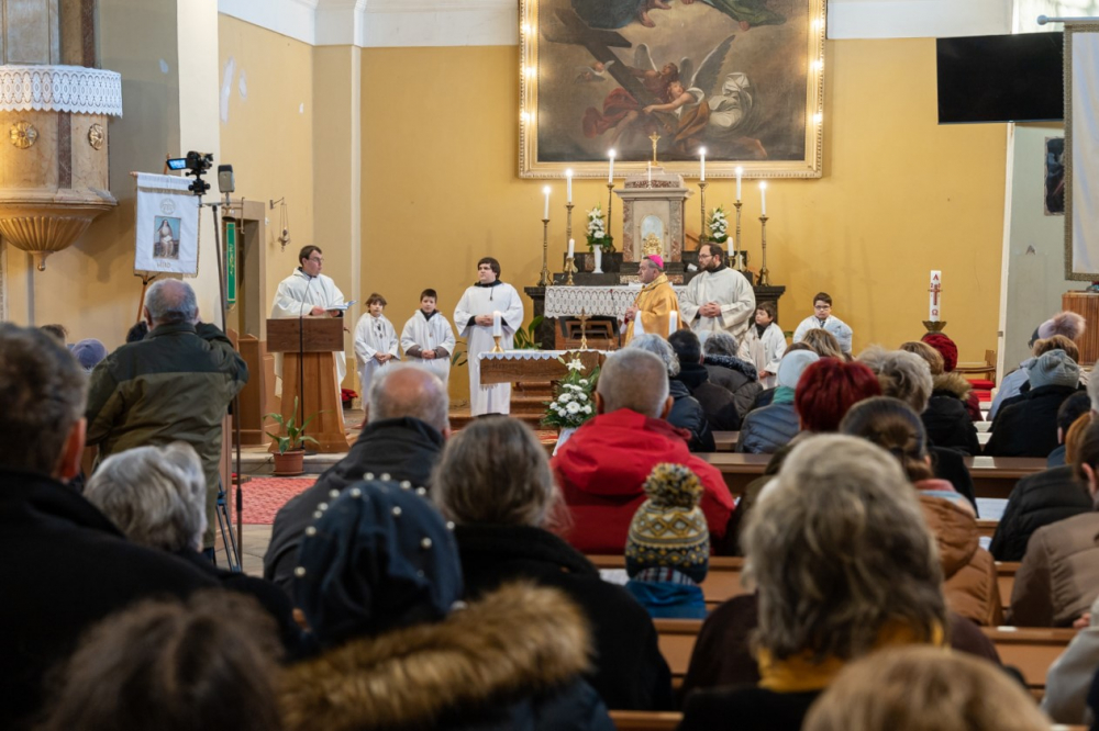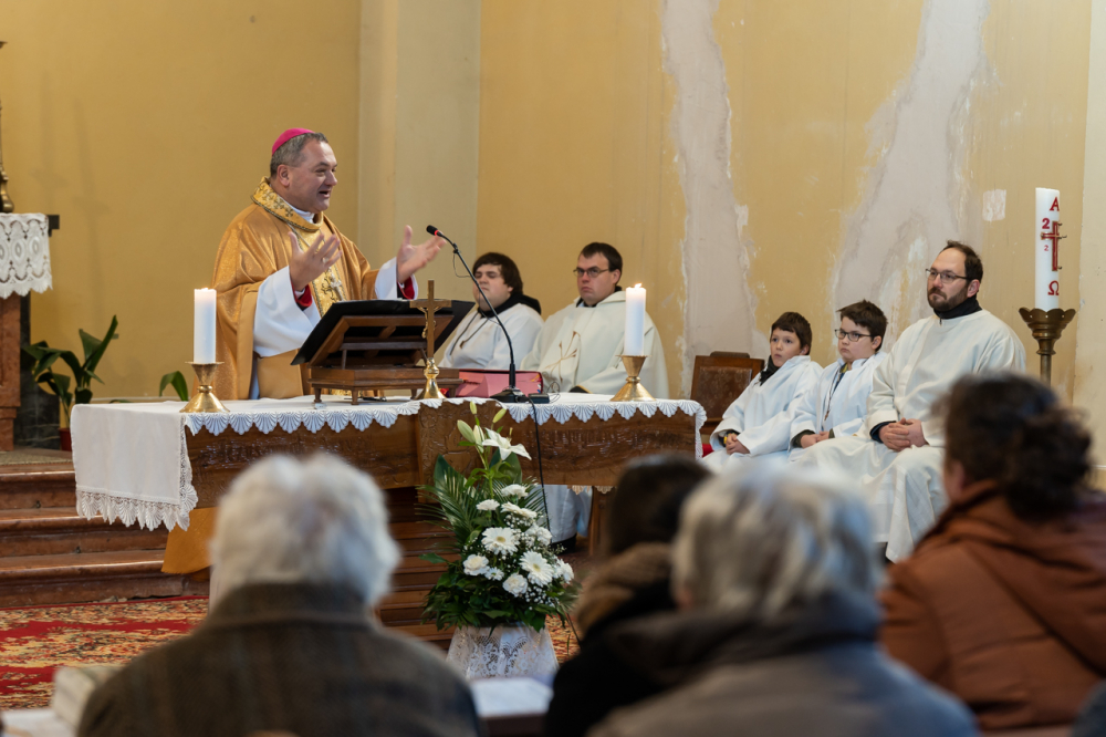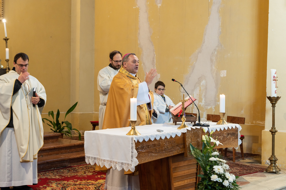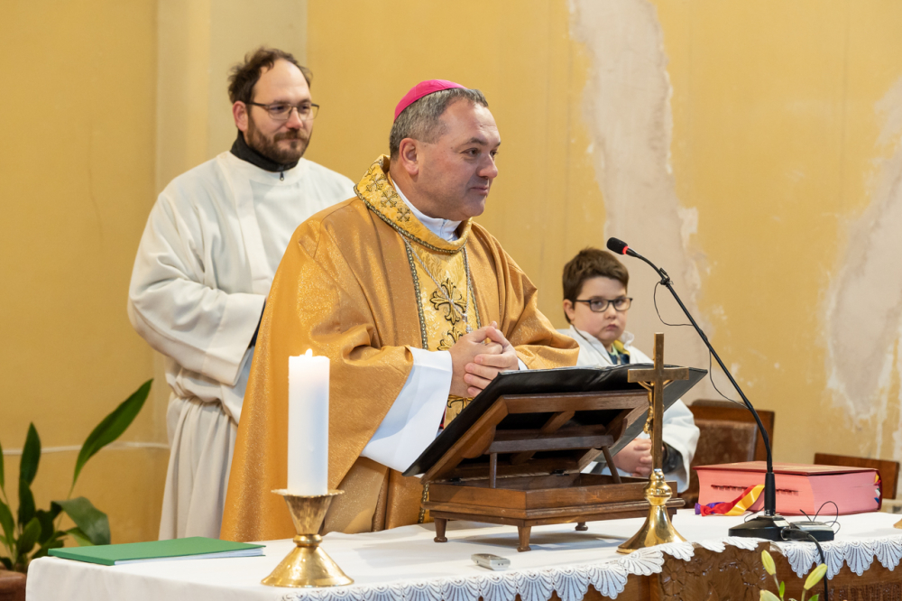 Lovász Zsolt plébános köszönetét fejezte ki a főpásztornak a Pécsi Egyházmegye támogatásáért, melynek köszönhetően a közösség újra saját templomában ünnepelheti a szentmiséket. Az előzményekről szólva elmondta, az épületet 2019-ben statikai okok miatt bezárták. A Covid19-járvány idején a templomban a liturgiák szüneteltek, majd 2021-ben a helyi református közösség temploma fogadta be a szentmiséket.