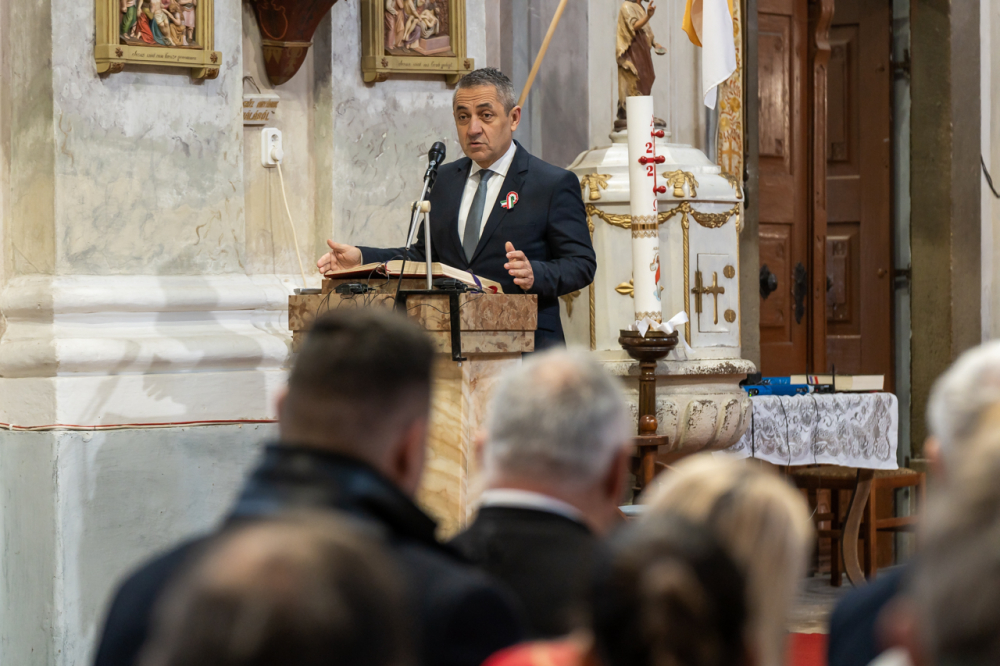 Az ünnepi beszédek sorát Potápi Árpád János nemzetpolitikáért felelős államtitkár, a térség országgyűlési képviselője zárta, aki beszédében hangsúlyozta, a templom nemcsak köveket jelent, hanem azt a közösséget, melynek tagjai hétről hétre együtt vannak. „Amikor megerősítettük ezt a templomot, abban bízva erősítettük meg, hogy a templom népét, a közösséget erősítettük meg" – fogalmazott.