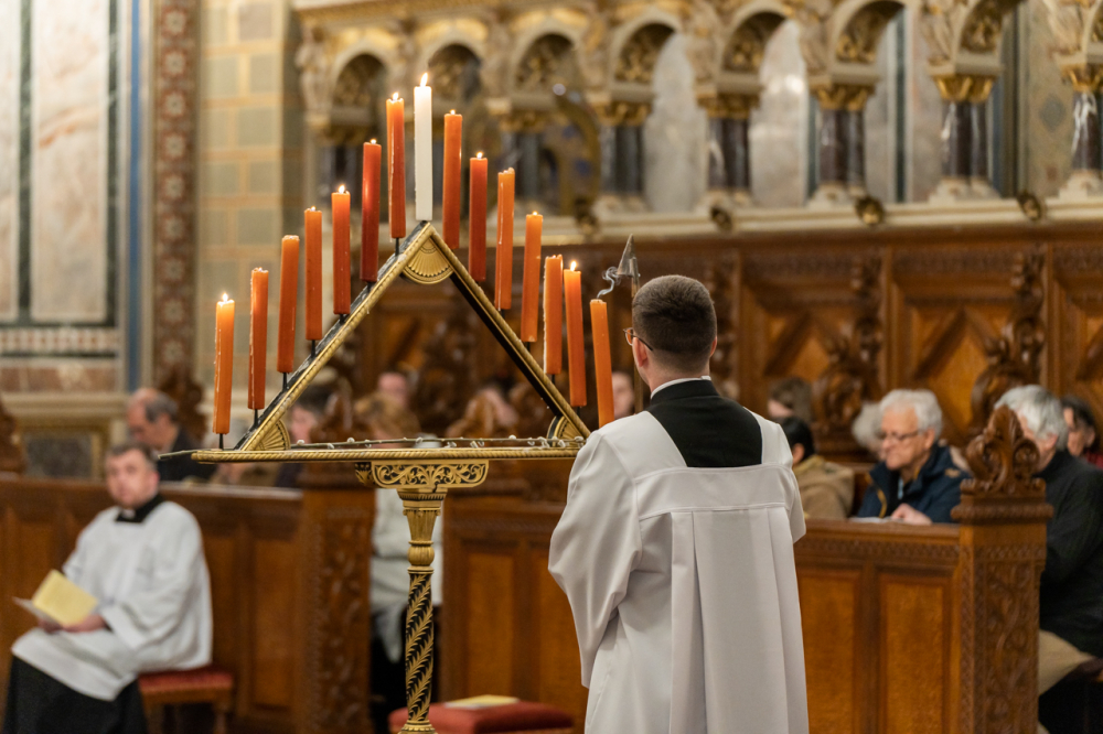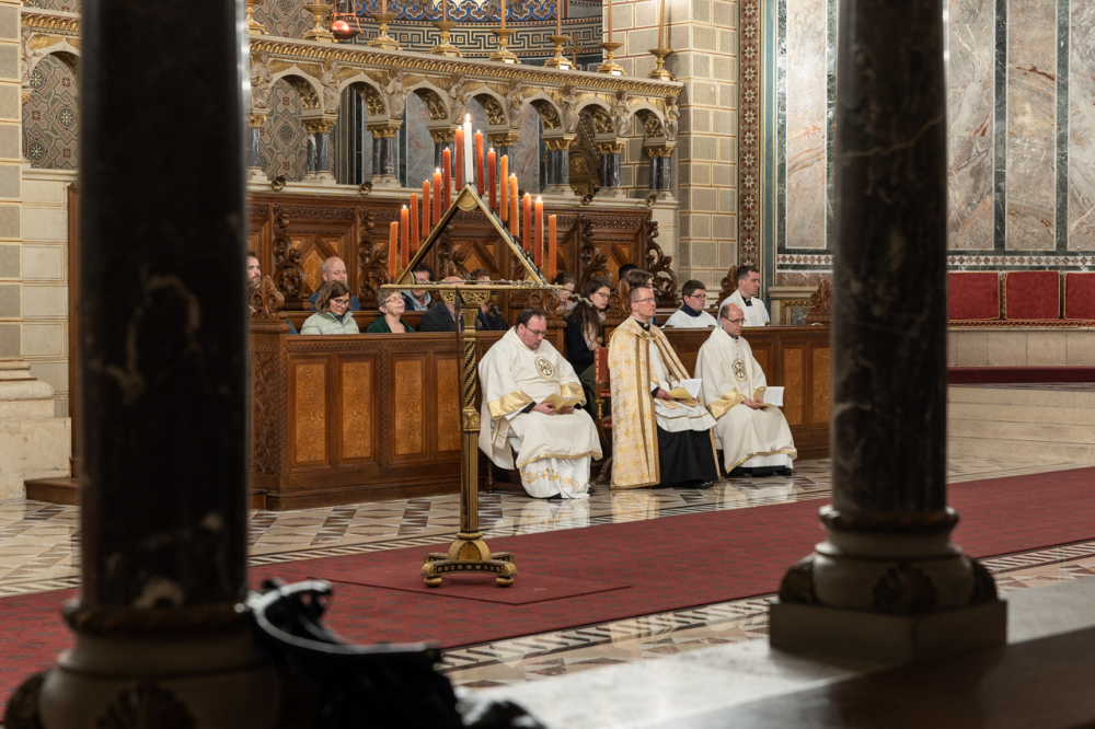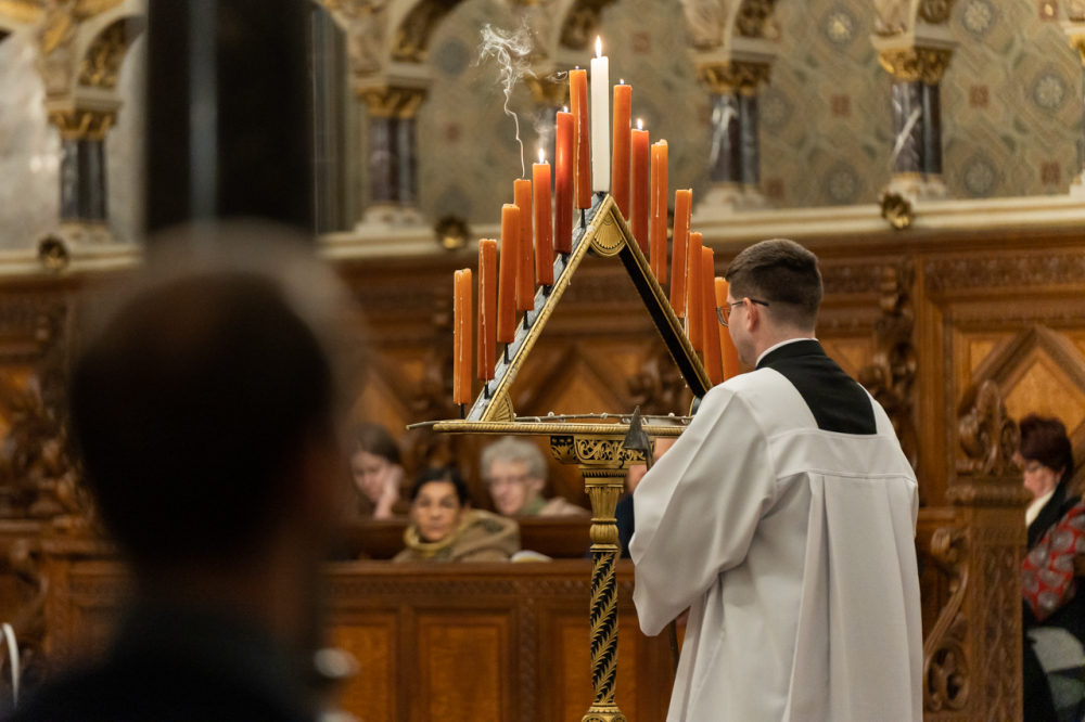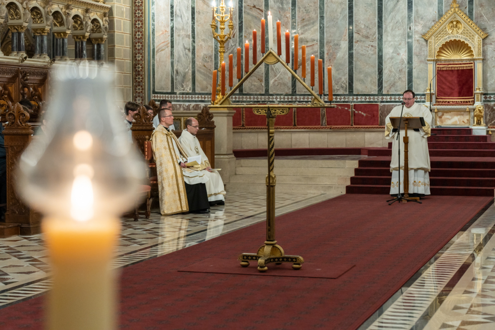 A sötétzsolozsma szimbólumokban gazdag szertartását végezték nagyhét szerdáján este a pécsi székesegyházban, ahol elhangzottak Jeremiás próféta siralmai, a lamentációk. A szertartást Máger Róbert püspöki irodaigazgató, a székesegyház plébánosa vezette egyházmegyénk papnövendékeinek közreműködésével.