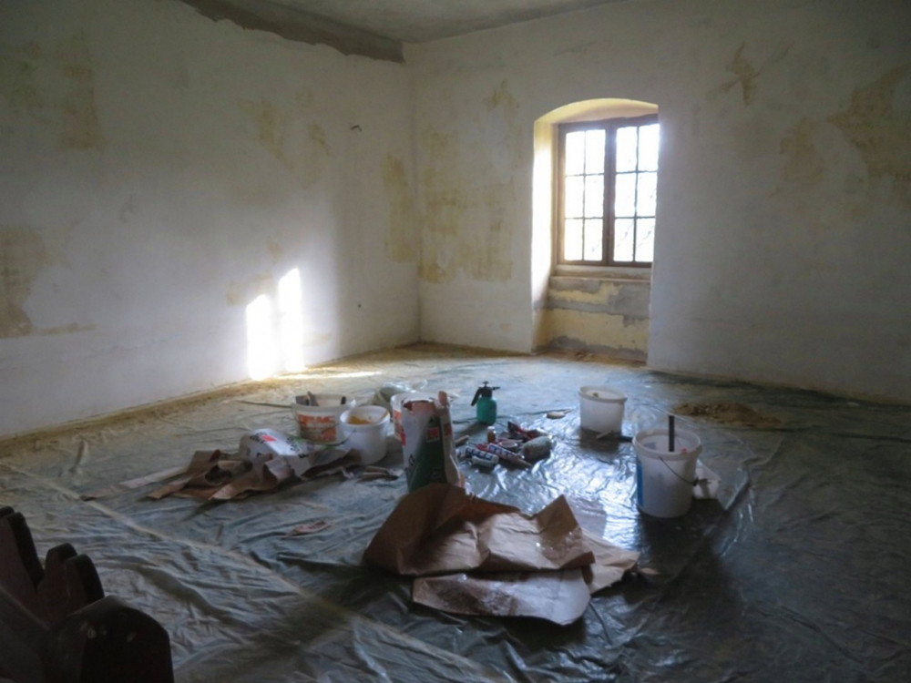 „A kegyhelytörténeti múzeum kialakítása hét évvel ezelőttre nyúlik vissza. Akkor kezdtük meg a kegyhelyen az értékóvó és felújító munkálatokat. A templom nagytakarítása kapcsán a sekrestye feletti elhanyagolt termet, az egykori oratóriumot is kitakarítottuk, és amennyire akkor lehetett, rendbetettük. Sajnos ekkor még az omladozó mennyezet nem tette lehetővé, hogy a termet hasznosítsuk. A beázásokat megszűntetve viszont Horváth Sándor, a templom korábbi plébánosa újracserepeztette a terem feletti tetőt. 2020-ban kezdődtek meg a kegytemplom felújításának munkálatai, és a terem leszakadófélben lévő mennyezete teljesen le lett bontva. Elkészült az új mennyezet, majd 2022 decemberére a templom külső felújítása is. Még abban az évben sikerült felvinni - a Máriakéméndi Német Önkormányzat támogatásának köszönhetően - a terembe az áramot, és lámpatesteket is vásároltunk. Így már világítása is volt a helyiségnek."