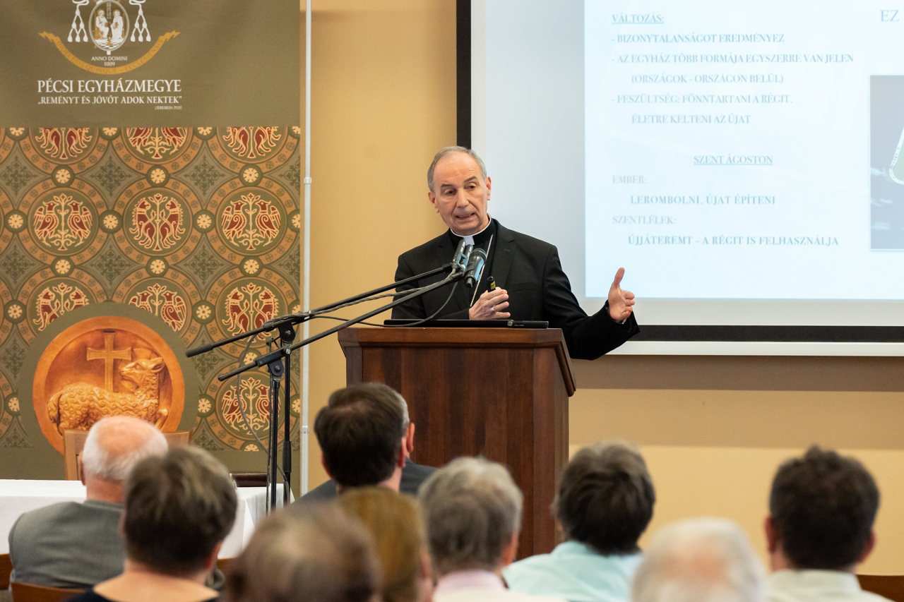 A Veszprémi Főegyházmegye érseke, a Pécsi Egyházmegye korábbi püspöke április 10-én Pécsett, a Magtár Látogatóközpontban arról beszélt, hogyan tud meghívó, befogadó és megtartó lenni korunk Egyháza.