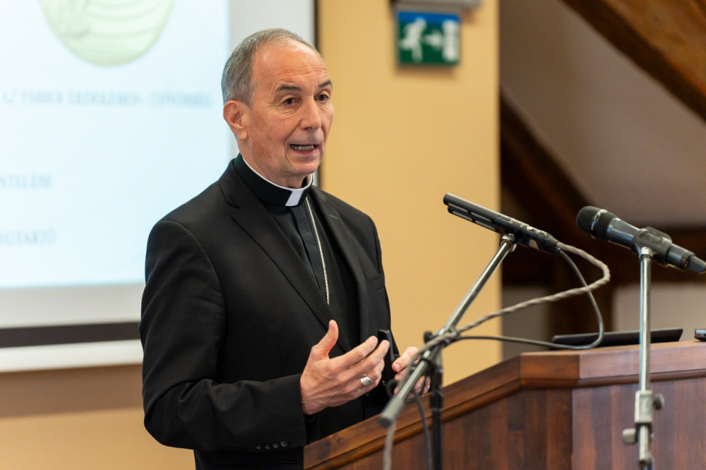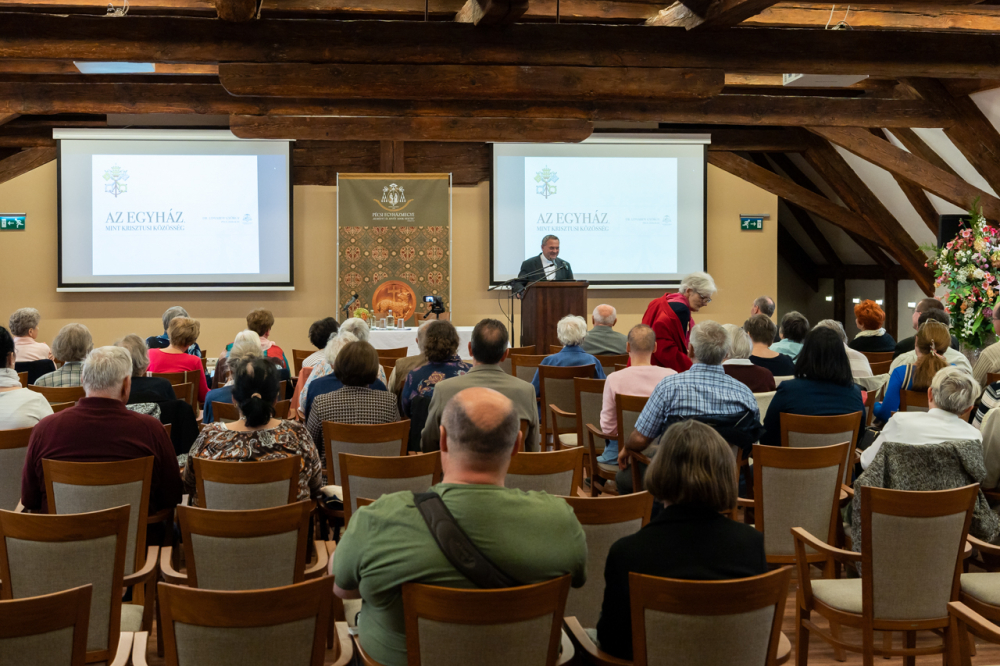 „Az isteni hatalom nem krisztuson keresztül mutatja meg magát, akit nem látunk, hanem az élő Egyházban, mely szemünk előtt van. Ha látjuk a testet, hiszünk a főben" – zárta Szent Ágoston szavaival az Egyházról, mint krisztusi közösségről szóló előadását dr. Udvardy György veszprémi érsek.