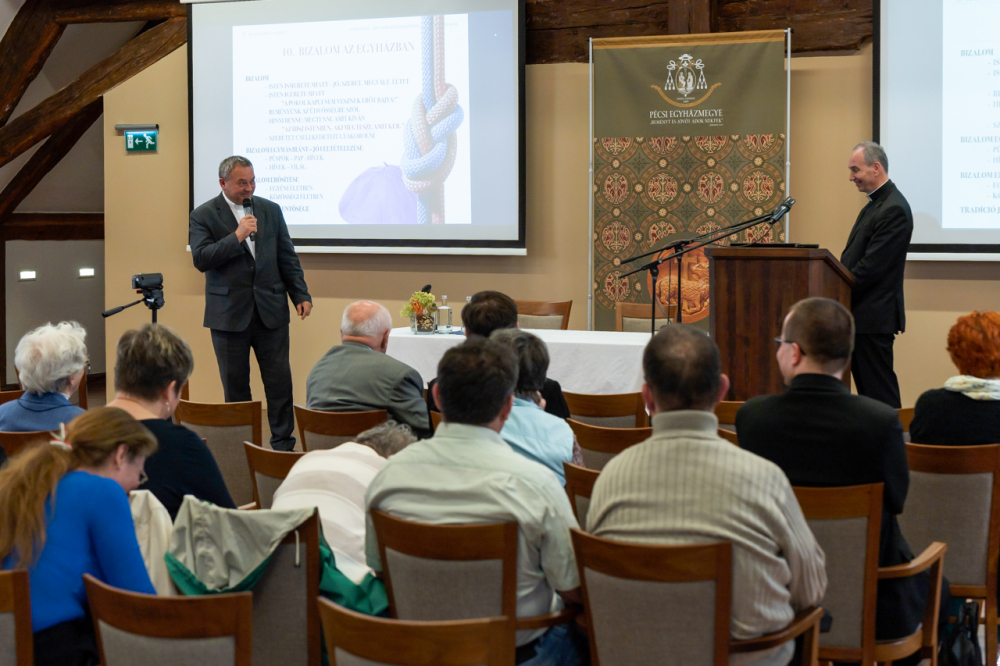 Udvardy György zárásként az Egyházba vetett bizalomról is szólt, mely – mint fogalmazott – számunkra különösen is fontos. A társadalmi, kulturális és ideológiai változások az Egyházban is, az egyházmegyékben is megjelennek, melyek következményeként egyfajta belső bizonytalanság hathatja át, de akár támadásként is érheti, mely megrendítheti az Egyházba vetett bizalmat. Sajnos sem az egységet, sem az evangelizációt nem segíti, amikor nézetek egymásnak feszülnek az Egyház tanítását illetően, vagy amikor a Szentatya tanításának, cselekvésének véleményezése kerül a média adta eszközök által a középpontba.