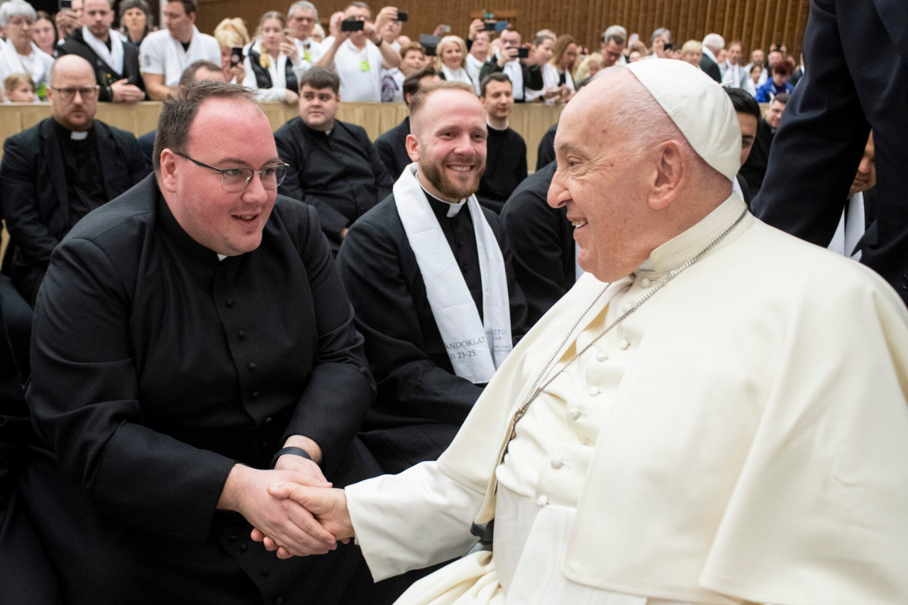 Legtöbbünknek mégis a Szentatyával való találkozás okozott maradandó emléket. Ferenc pápa ugyanis magánkihallgatáson fogadta a magyar zarándoktestvéreket a VI. Pál teremben. Számomra különleges élmény volt, hogy papszentelés előtt álló diakónusként a legelső sorban ülve hallgathattam a Szentatya beszédét, melyben felidézte egy évvel ezelőtti látogatásának emlékeit. Nagy öröm van a szívemben, hogy az egy évvel ezelőtti budapesti személyes találkozás Rómában megismétlődött. Ismét kezet foghattam „Krisztus földi helytartójával”. Különösen is megajándékozottnak éreztem magam ebben a pillanatban.