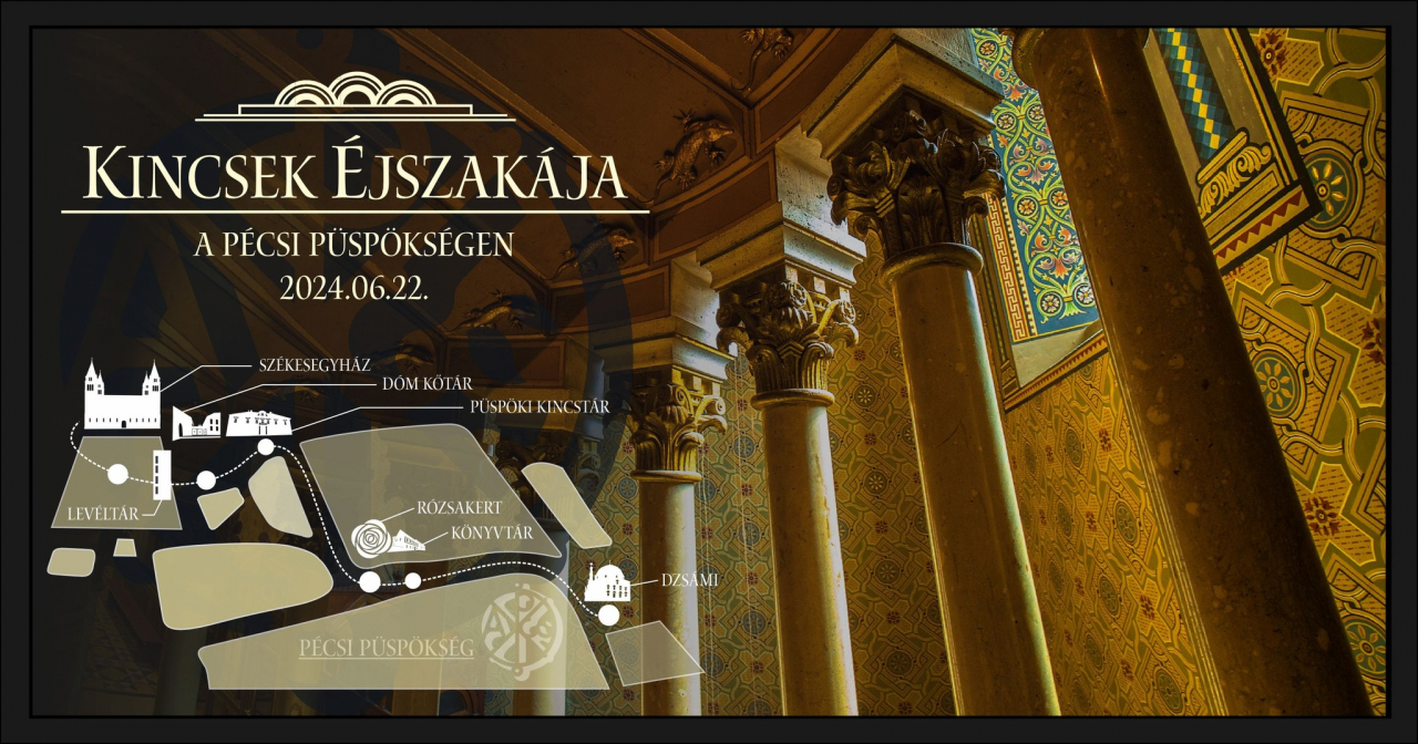 A Múzeumok éjszakája elnevezésű országos programsorozathoz idén immár nyolcadik alkalommal csatlakozik a Pécsi Püspökség. A Kincsek éjszakája hét helyszínen várja a látogatókat.