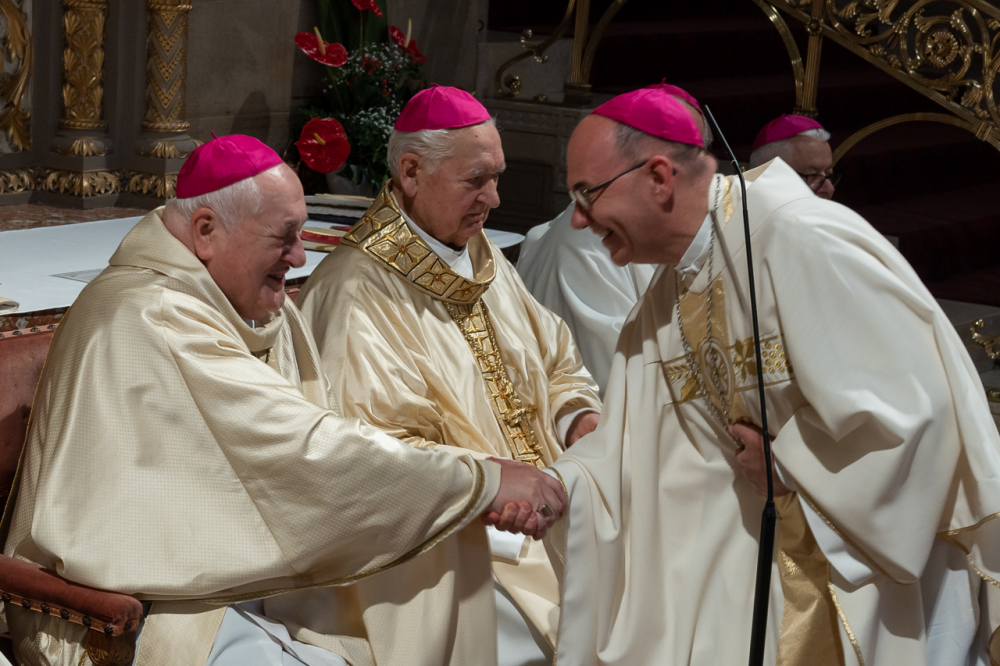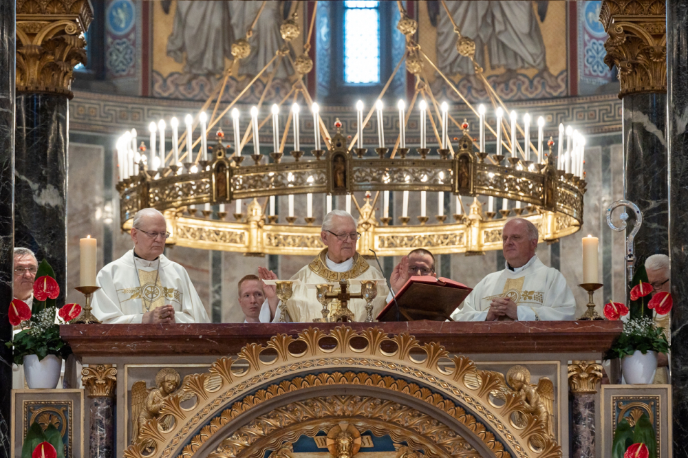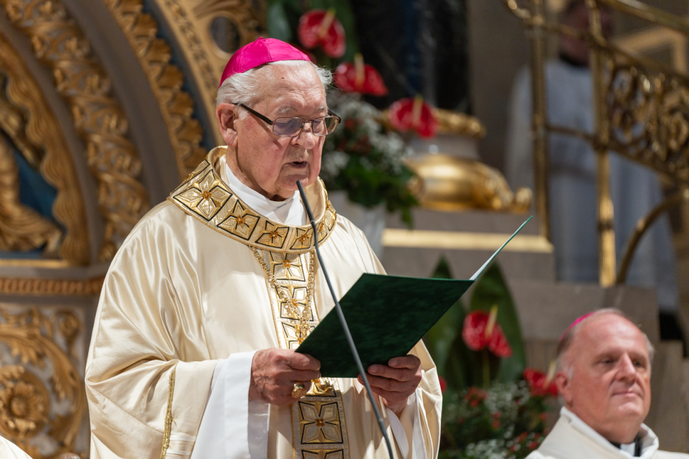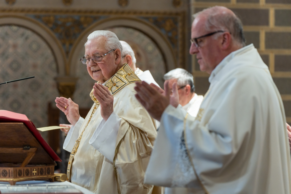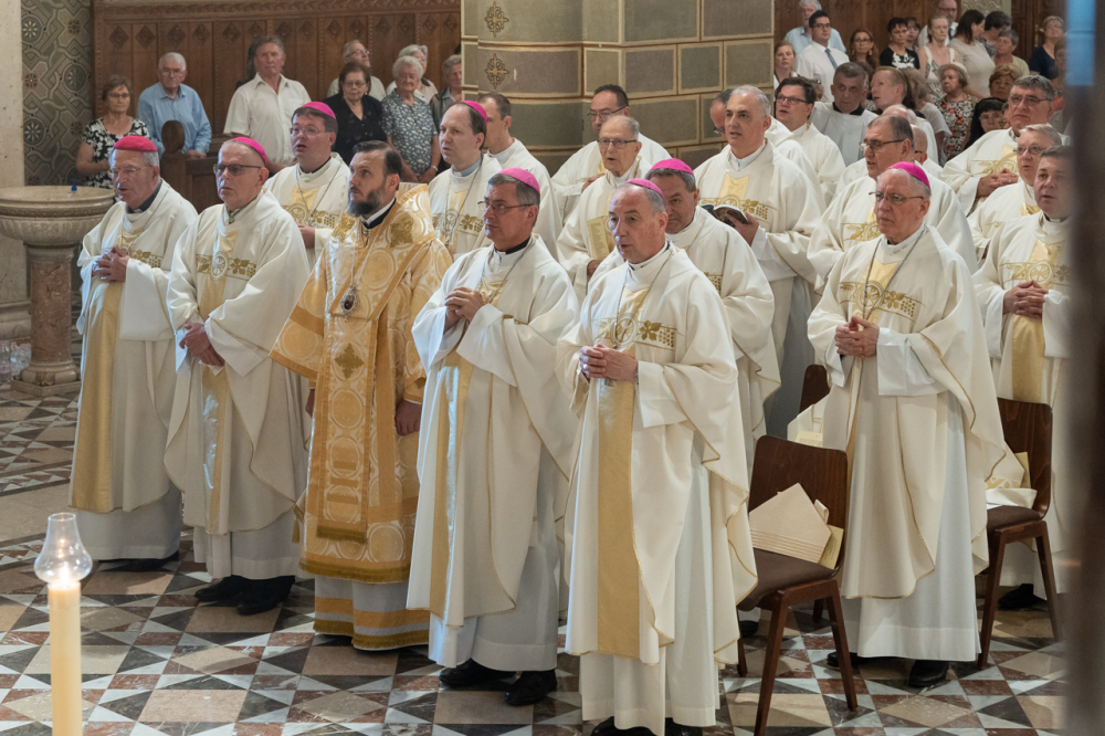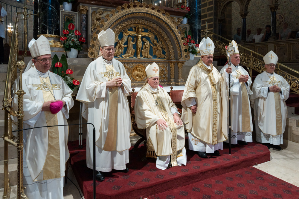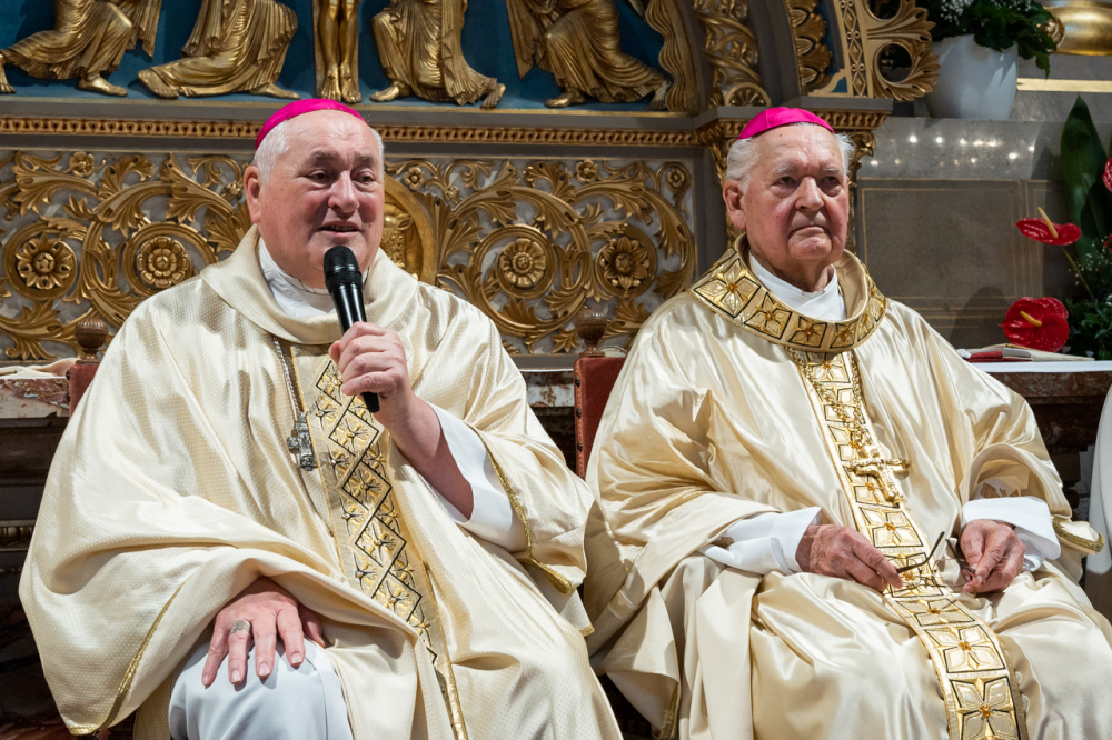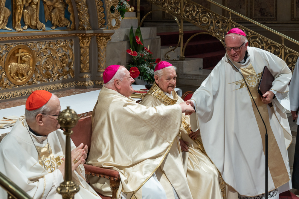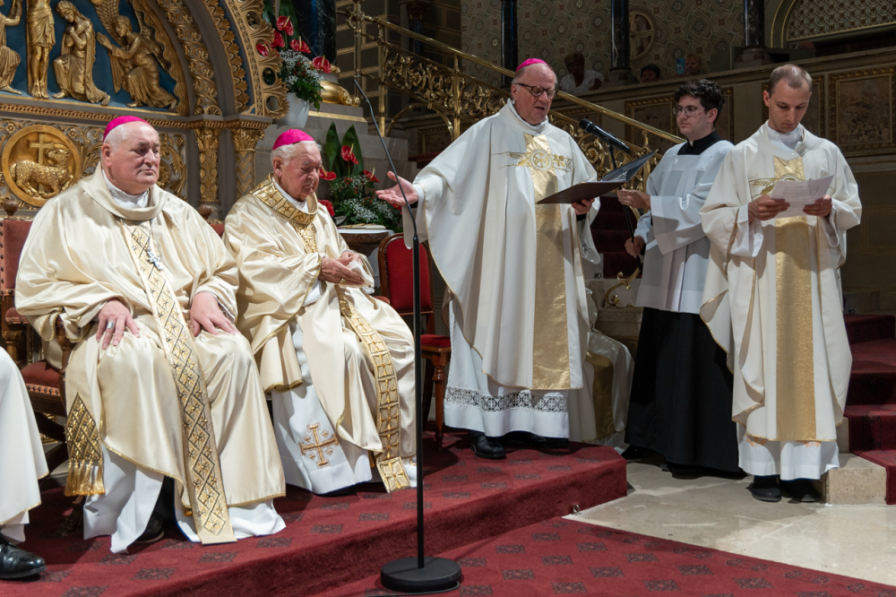 Mayer Mihály nyugalmazott pécsi megyéspüspök pappá szentelésének 60. és püspökké szentelésének 35. évfordulóját, valamint Bíró László nyugalmazott tábori püspök pappá szentelésének 50. és püspökké szentelésének 30. évfordulóját ünnepelték a pécsi székesegyházban Szent Péter és Pál apostolok ünnepén, június 29-én.