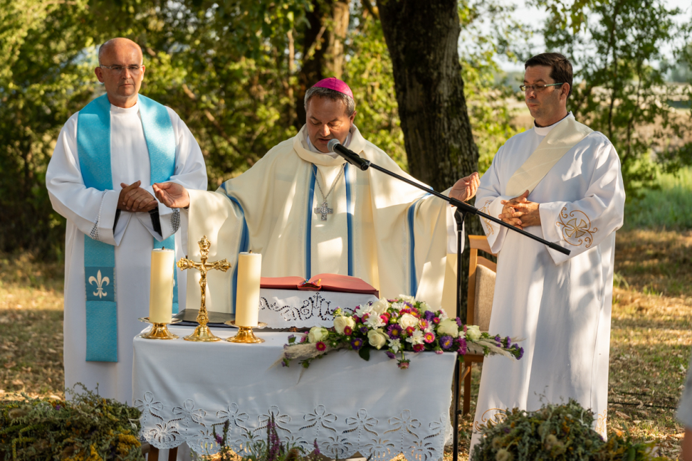A bólyi plébániához tartozó borjádi templom búcsúját tartották augusztus 15-én, Nagyboldogasszony, Szűz Mária mennybevétele főünnepén, amikor szentmisét celebrált Felföldi László pécsi megyéspüspök a templomkert árnyas fái alatt felállított, gyógynövény csokrokkal díszített szabadtéri oltárnál.