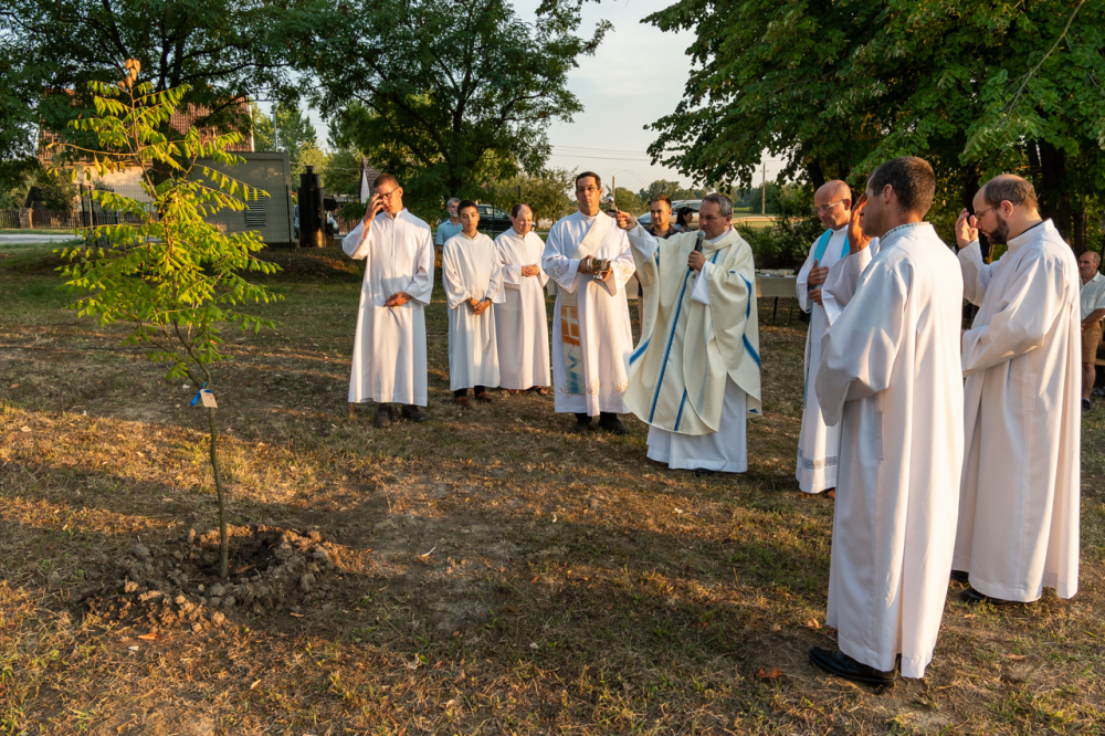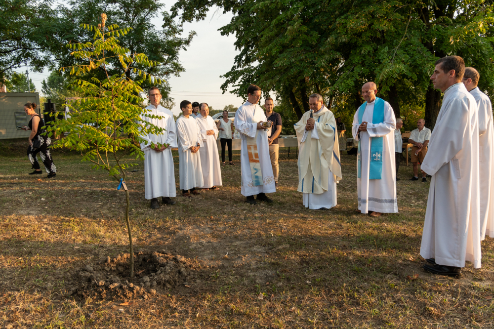 Végezetül pedig egy, a templomkertben ültetett fa megáldásával útnak indítottak egy szép hagyományt a településen, mely szerint, amikor gyermek születik a faluban, egy fát ültetnek a templomkertben. Az első fa, mely most püspöki áldásban is részesült, Molnár Martin születésének örömét hirdeti, bízva abban, hogy egyre népesebb facsoport, majd pedig idővel erdő veszi körbe a borjádi Nagyboldogasszony-templomot.