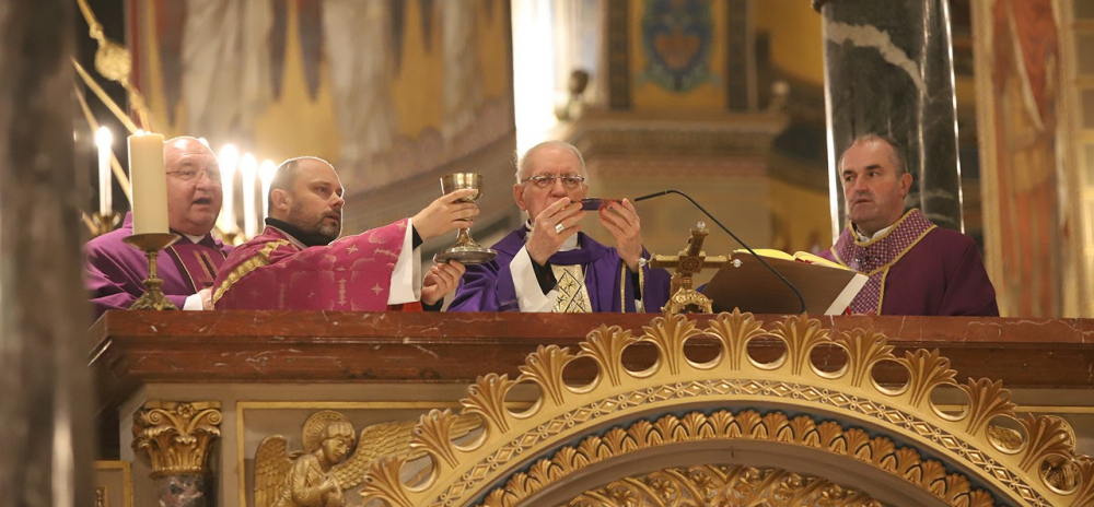 A köszöntő szavak után kezdődött a szentmise Bacsmai László referens, Barics Gábriel görcsönyi plébános, illetve Ivica Žuljević káptalani prépost koncelebrálásával. Az énekes szolgálatot hagyományosan a pécsi „August Šenoa“ Asszonykórus vállalta.