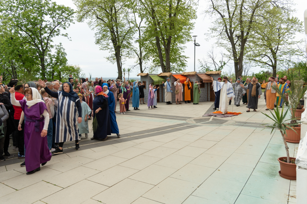 A máriagyűdi közösség 2010 óta hagyományosan minden évben virágvasárnap megjeleníti Krisztus szenvedésének történetét a kegyhelyen. Az élő szereplős misztériumjátékban a közösség tagjain kívül az idén Felföldi László pécsi megyéspüspök és Keresztes Andor, a kegytemplom plébánosa is szerepet vállalt.