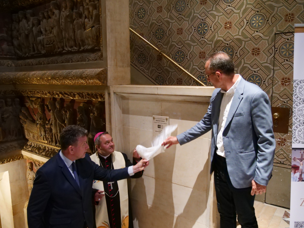 Hozzátette, ilyen példaadó személyek azok, akik a pécsi székesegyház altemplomában nyugszanak. Ők nyolcan szellemiségükkel, fennmaradt műveikkel, gondolataikkal szimbolikusan is kőbe vésték nevüket a magyarság történelmében, a magyar egyháztörténetben, a magyar irodalomtörténetben. Ma pedig nevüket, életüket fizikailag is kőbe véstük itt, a nyughelyüknél – tette hozzá a főigazgató. Móczár Gábor beszédében emlékeztetett arra, hogy a pécsi székesegyházban felavatott tábla az első úgynevezett okos emléktábla. „Bízom benne, hogy minden olyan temetkezési helyet meg tudunk jelölni ebben a formában, ahová fizikai akadályok miatt parcellakövet nem tudunk telepíteni” - tette hozzá a főigazgató.