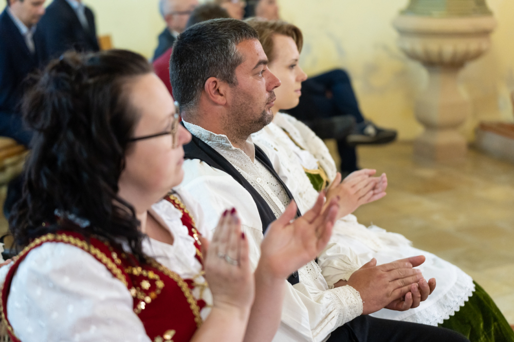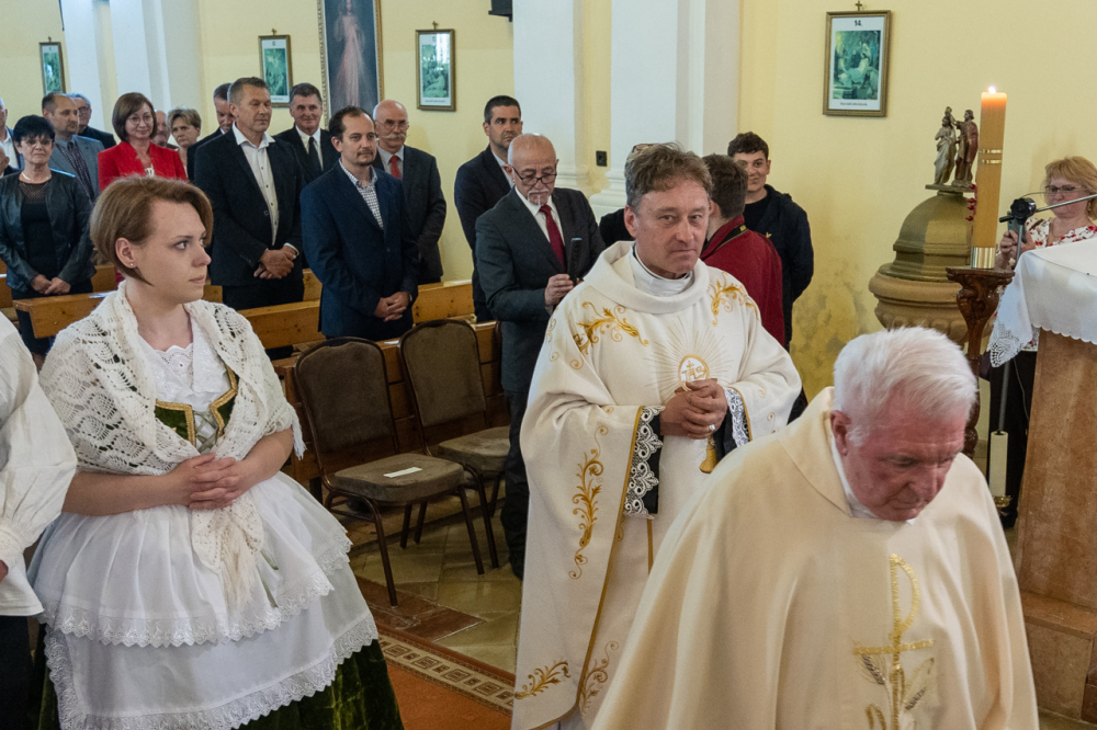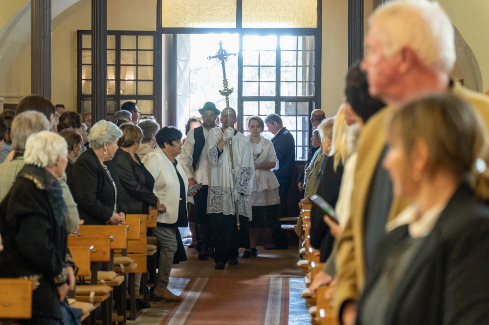 A liturgia zárásában Kamerer Aleksandar atya hálatelt szívvel mondott köszönetet a jelen levő papságnak és a híveknek a befogadásért, majd Felföldi László megyéspüspök és Mayer Mihály nyugalmazott püspök személyes jókívánságait követően ezüstmisés áldással ért véget a liturgia Szakcs 1720 körül épült templomában.