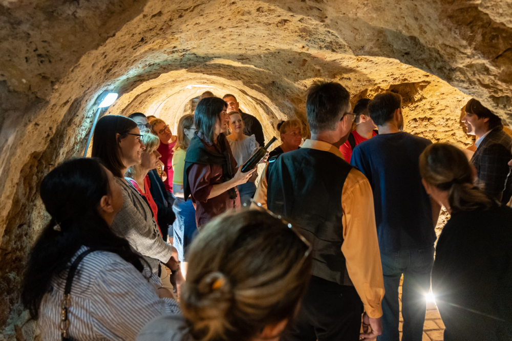 A látogatás a palota kertjét a Magtár Látogatóközponttal összekötő középkori alagútrendszerben folytatódott, melyet biztonságos, földalatti átjáróként használták azokban az időkben, amikor a kommunista egyházüldözés a püspöki rezidenciába és annak kertjébe számtalan lehallgató-készüléket telepített. A nagy múltú alagút kivételes környezetben mutatja be a vészterhes időszakot.