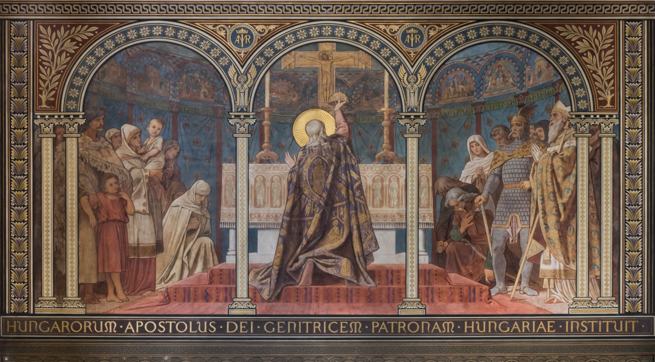 Istvánt, akit méltán tekintünk a Magyar Katolikus Egyház alapjai letéteményesének is, az 1000. év karácsonyán kenték föl és koronázták királlyá Esztergomban. A pápai korona István szuverén királyi méltóságra emelését és apostoli küldetésének elismerését jelentette. A pápától kapott előjogra támaszkodva birodalmának szilárd egyházi szervezetet adott: országát tíz püspökségre osztotta, köztük két érsekséget alapított Esztergomban és Kalocsán, 1009-ben pedig megalapította a Pécsi Egyházmegyét.