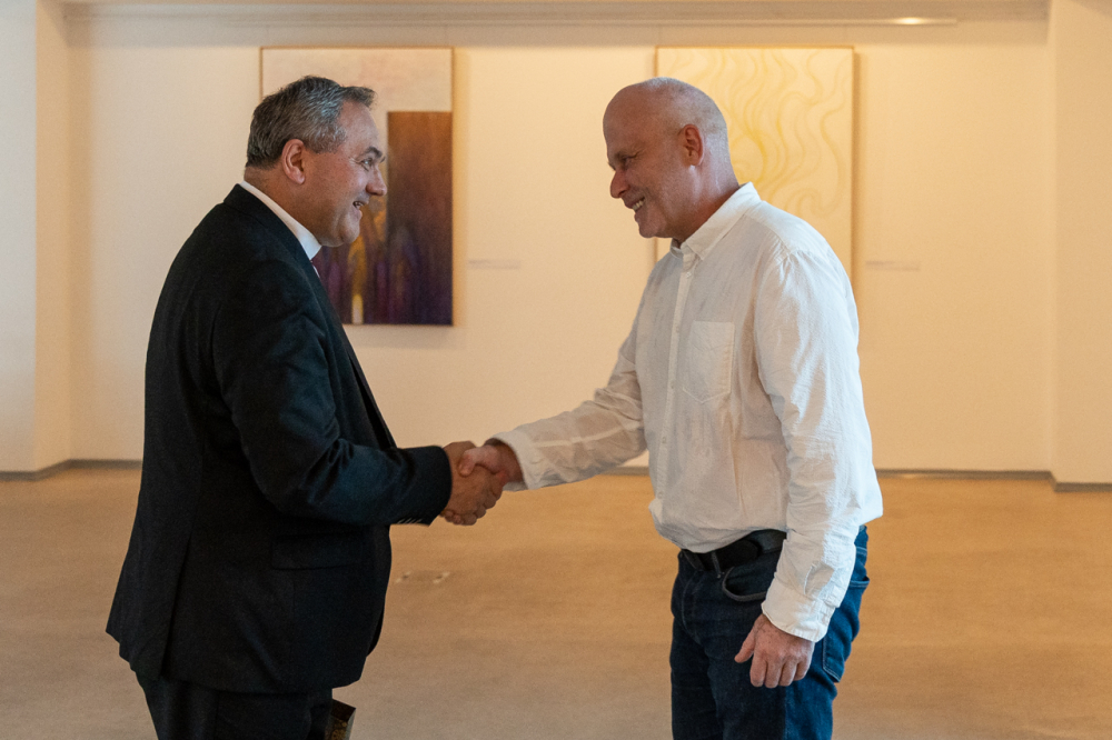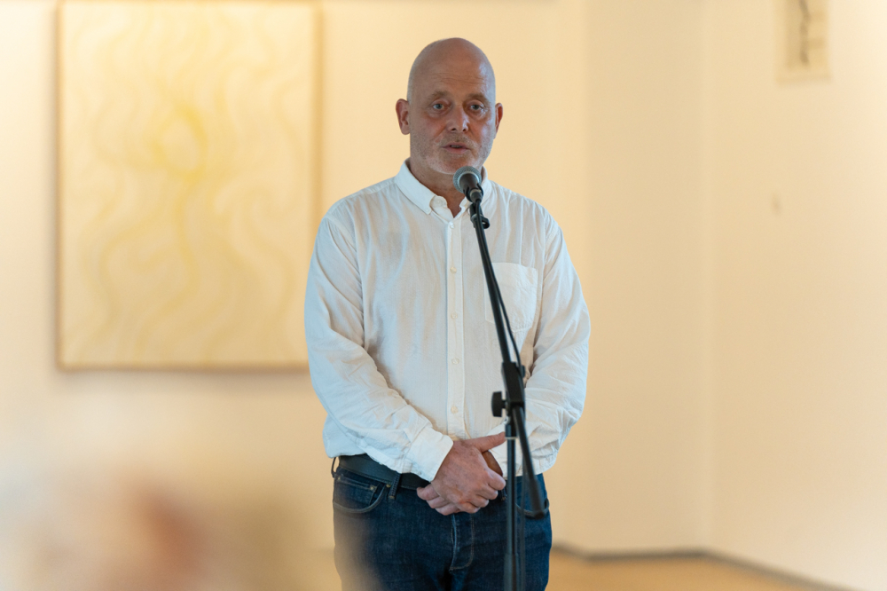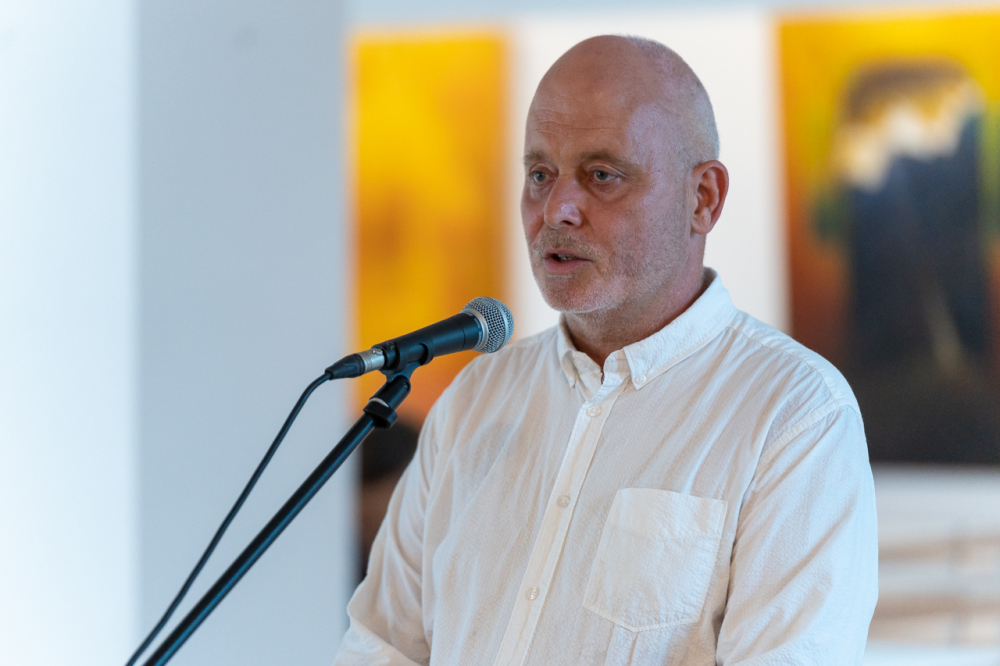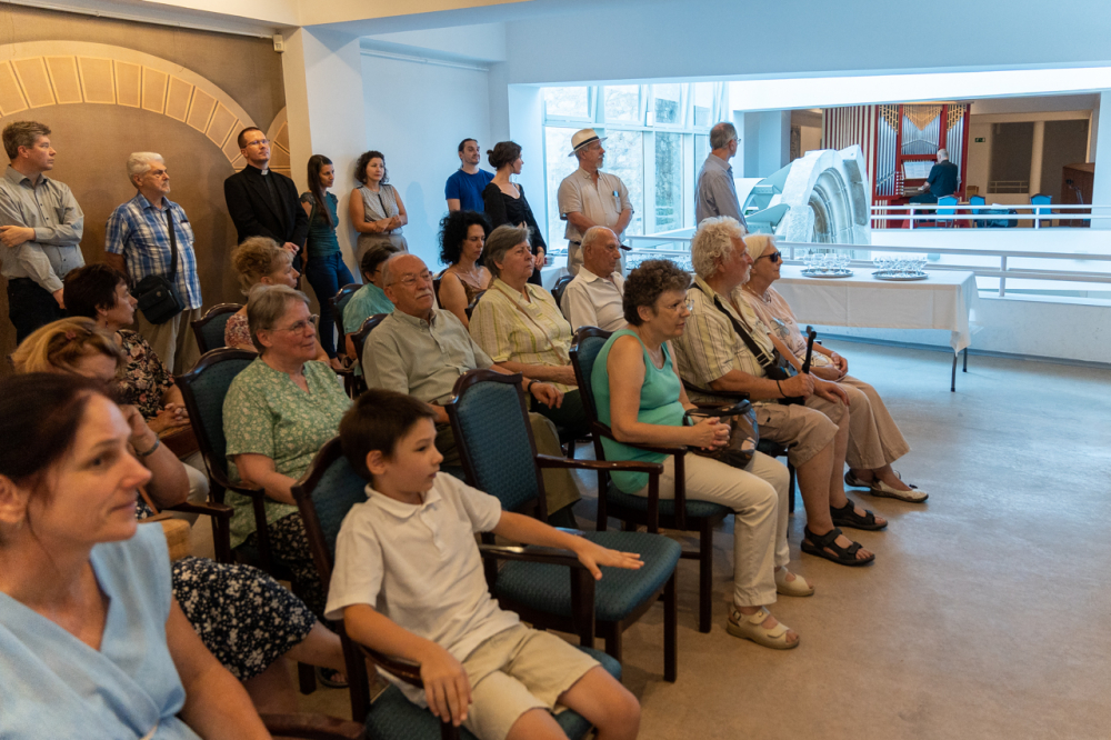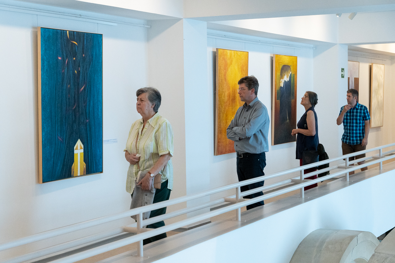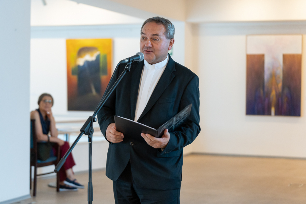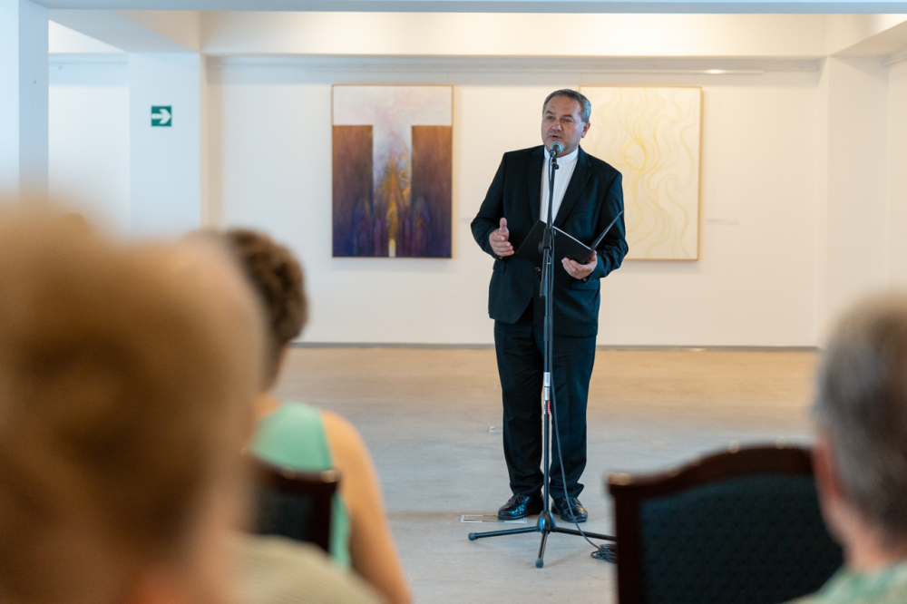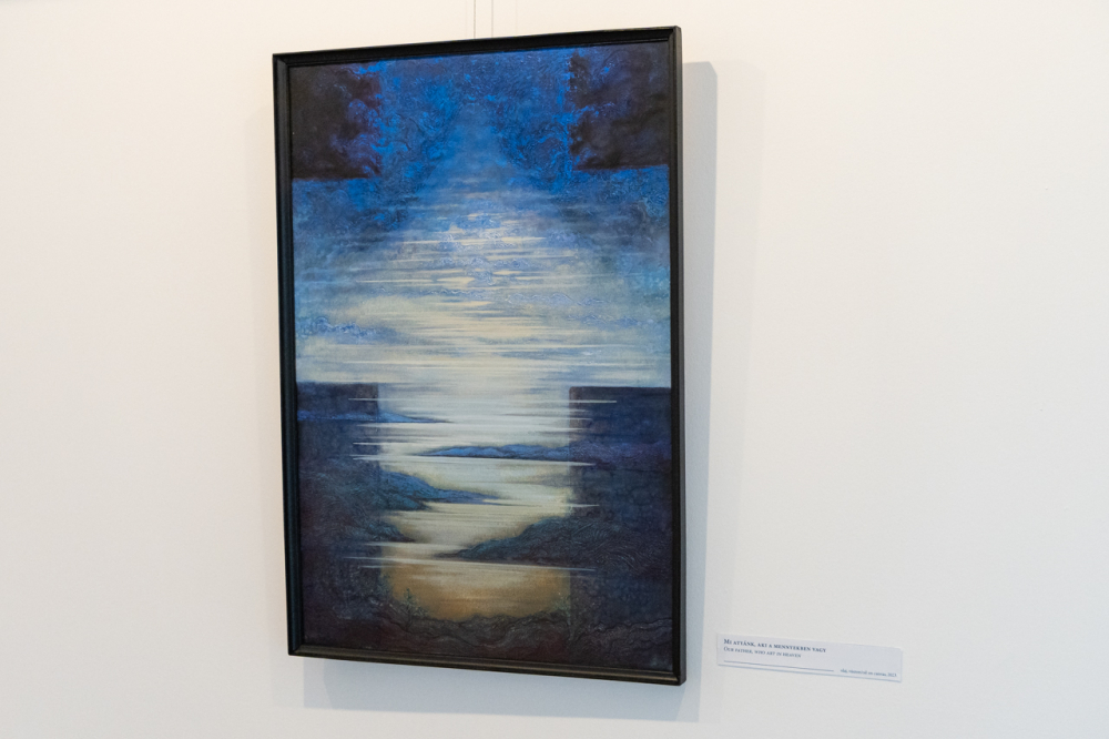 A kiállítás megnyitóján Felföldi László pécsi megyéspüspök méltatta a művész munkásságát. Köszöntőjében kiemelte, az emberi szív legmélye, létünk értelmének összefoglalása látható a Mi Atyánk című ciklus képeiben, melyekben a magányosság lelki mélysége és világossága jeleníti meg színekkel és formákkal mindazt, amire Jézus tanított: a Mennyei Atyánk a rejtekben is meghall, meghallgat minket és válaszol a titkos csendben.