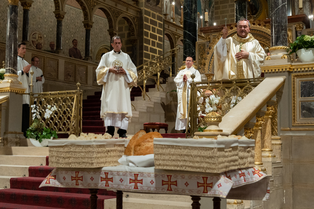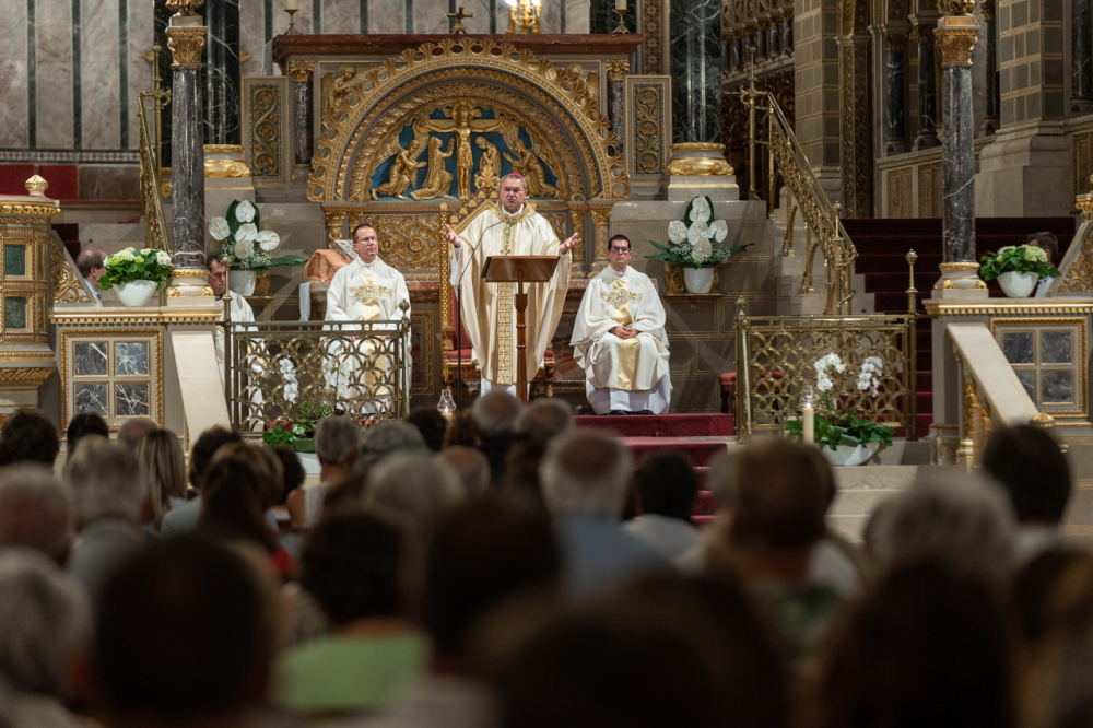 Szent István királyunk példája és életműve nyomdokain haladva ehhez merjük kézbe venni a kenyeret, a sorsunkat és a szeretet áldozatában megtörni és ajándékozni egymásnak, mert annyit ér az életünk, amennyire éltető, tápláló, jövőt segítő kenyérré tudunk válni – figyelmeztetett elmélkedésében a főpásztor.