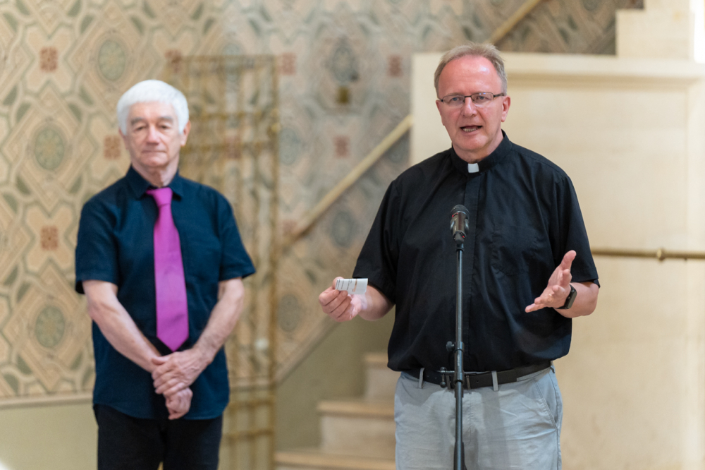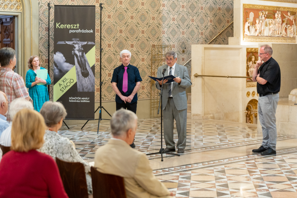 Az eseményen Tám László fotóművész méltatta a művész munkásságát, melyben, mint fogalmazott, ablakot nyitott a világ és a hitünk egy másfajta megismerésére. A kortárs alkotó felelevenítette Jézus keresztre feszítésének pillanatait elbeszélő XII. stációt, mely a fotókon történeteket, emberi sorsokat, gyakran tragédiákat őrző útmenti keresztek, kőből faragott Krisztus-arcok képében tekintenek ránk a kiállítás képein keresztül.