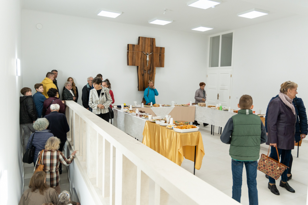 A liturgiát követően a felújított közösségi terek megáldása következett, melyeket szeretetvendégség keretében használatba is vett az egyházközség.