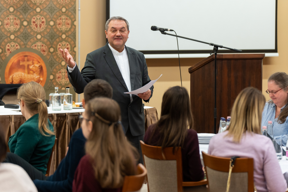 A résztvevőket az a kérdés is foglalkoztatta, hogyan ismerhető fel Isten hangja személyes életünkben a mai világ Istentől elfordult zajában. A püspök az ószövetségi Sámuel próféta Istennek adott válaszát hívta segítségül: „Szólj, Uram, mert hallja a te szolgád!” (1Sám 3,9) – rávilágítva, hogy a lelki csend, a figyelem és a nyitottság a kulcs a párbeszédhez.