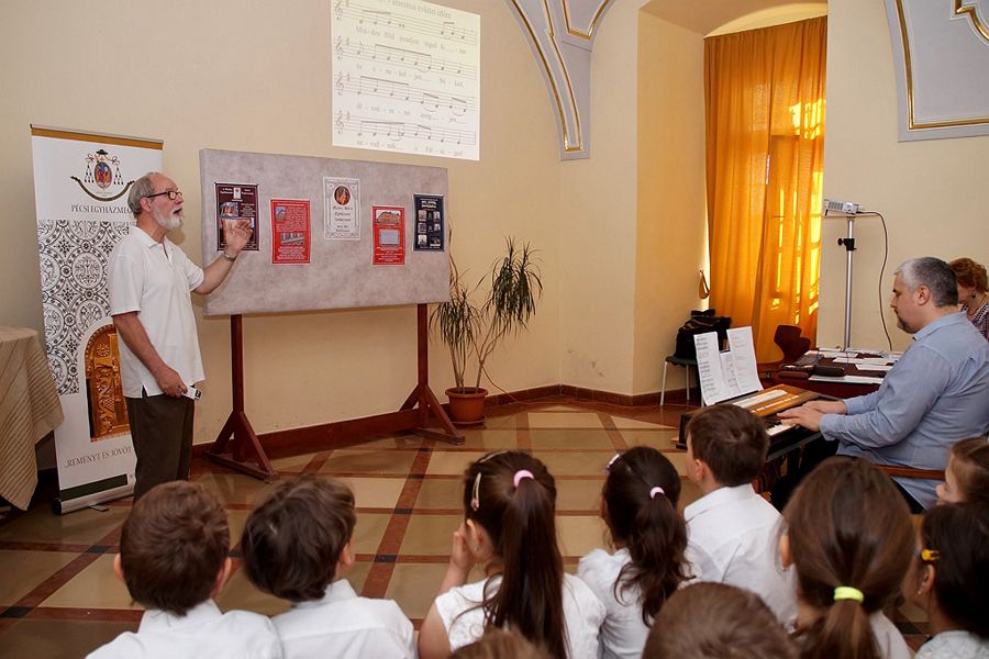 A rendezvény köszöntőbeszédében Gyöngyösi István hangsúlyozta, hogy az egykori Székesegyházi Énekiskola jogutódjaként az iskola kötelességének tartja az igényes egyházzene ápolását. A Hunyadi úti épület latin feliratának fordításából kiderül, hogy azt a szent zene gyakorlására emelte Dulánszky Nándor püspök 1888-ban. Néhány szó esett az énekiskola történetéről is, ezen kívül a verseny emblémájának részleteire és jelentőségére is fény derült.