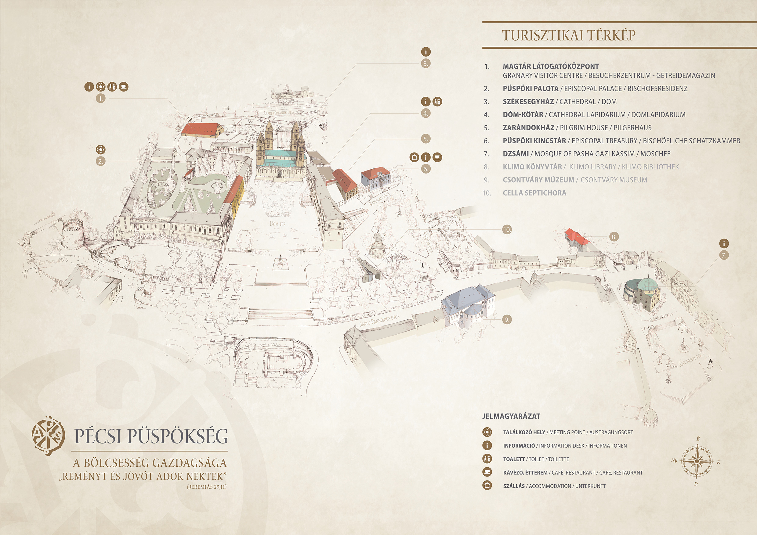 Except for the Episcopal Palace and the Episcopal Treasury that may be visited only as part of a guided tour and for which a ticket can be purchased only at designated times, the venues of the Bishopric of Pécs can be visited without making an appointment in advance. Tickets for the venues of the Bishopric of Pécs can be purchased at any of our ticket offices map.