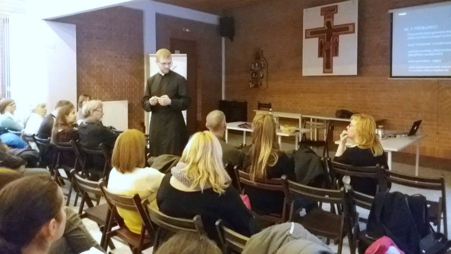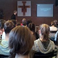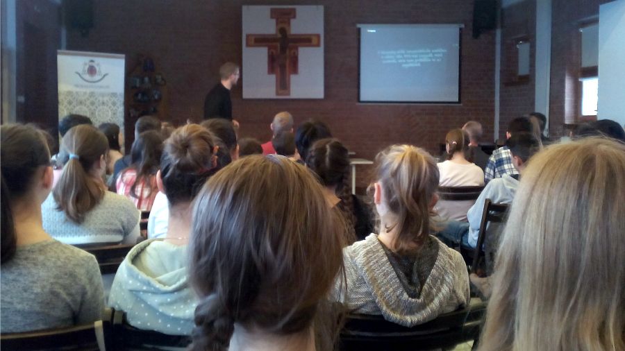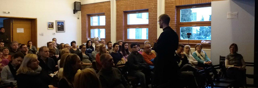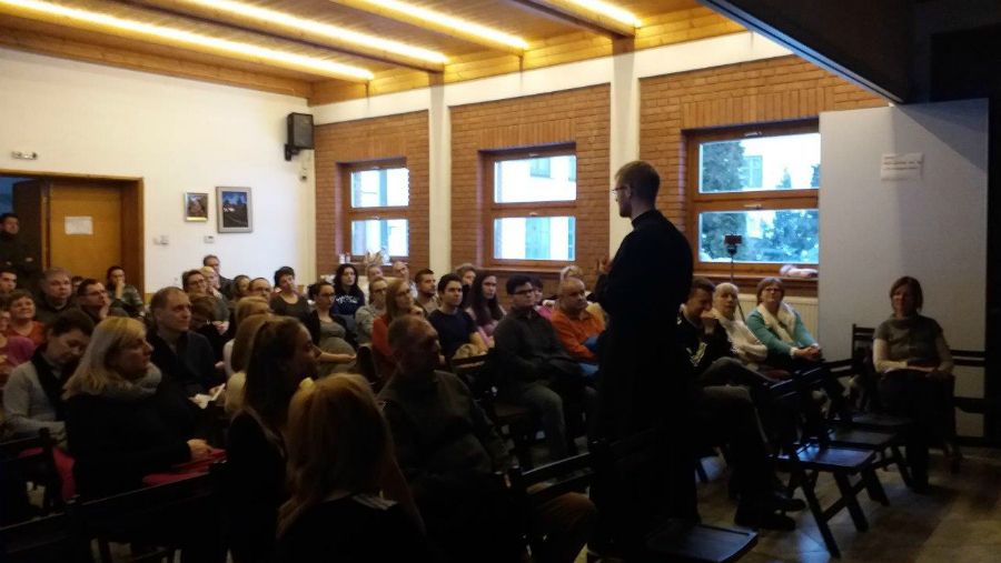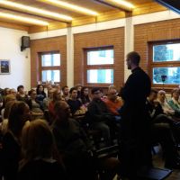 Az idei tanév második előadója Hodász András volt, a Pázmány Péter Katolikus Egyetem lelkésze, a 777 keresztény blog egyik szerkesztője, aki szókimondásáról és humoráról legalább annyira híres, mint egyenes, tiszta, a fiatalok számára is jól érthető beszédéről. Előadásának a plébánia közösségi háza adott otthont.