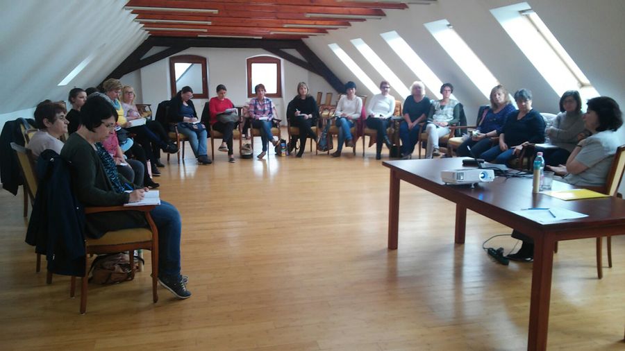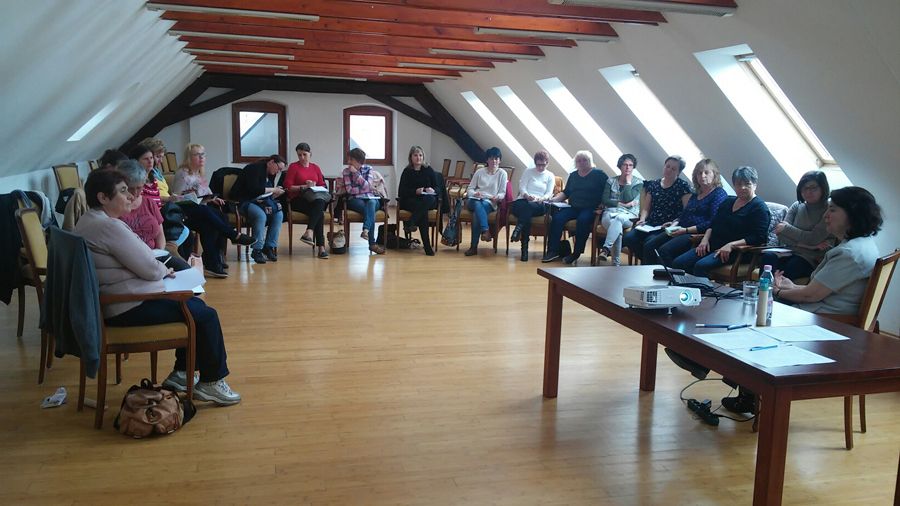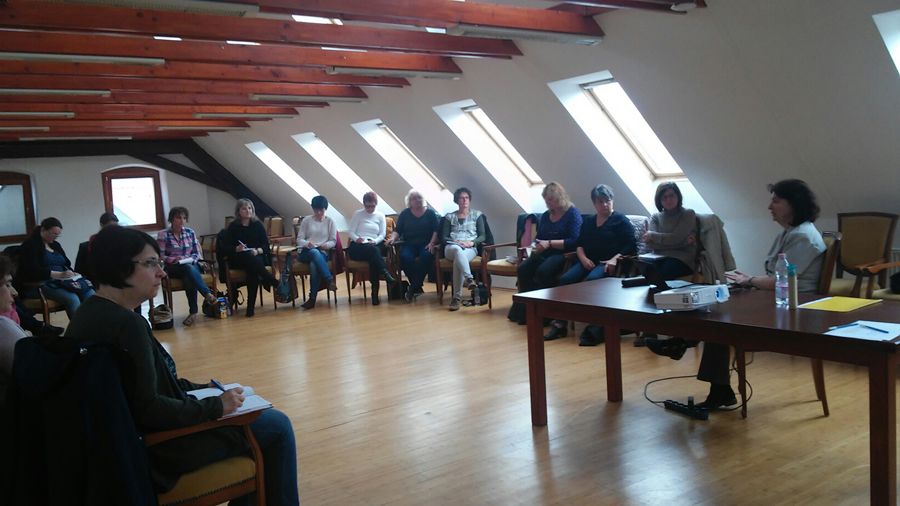 Nagyné Kütsön Katalin, közoktatási munkatárs vezetésével rövid előadás és beszélgetés, az esélyegyenlőségi, antiszegregációs feladatok témakörben, egyházmegyei teendők megjelölésével; különös tekintettel a hátrányos helyzetű, és sajátos nevelési igényű gyermekekre/tanulókra.