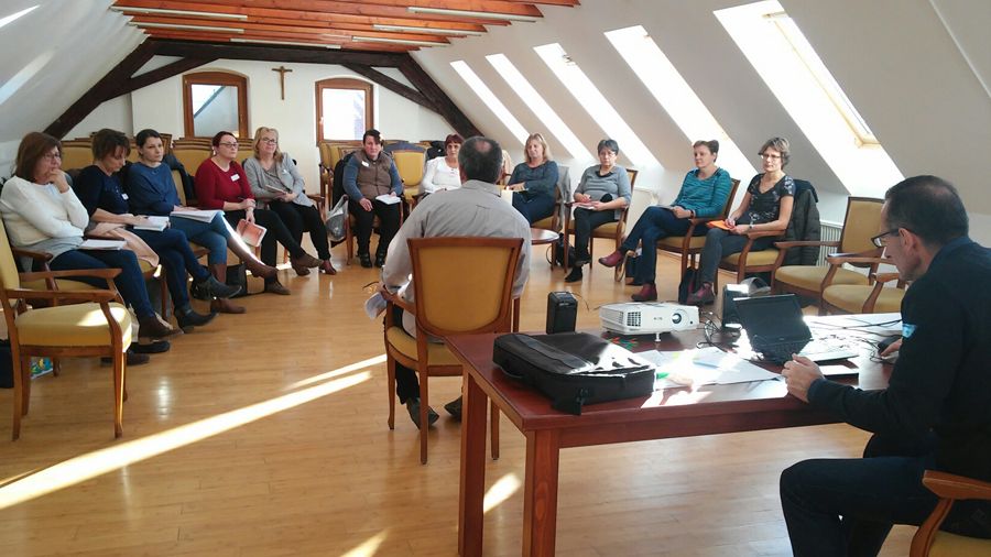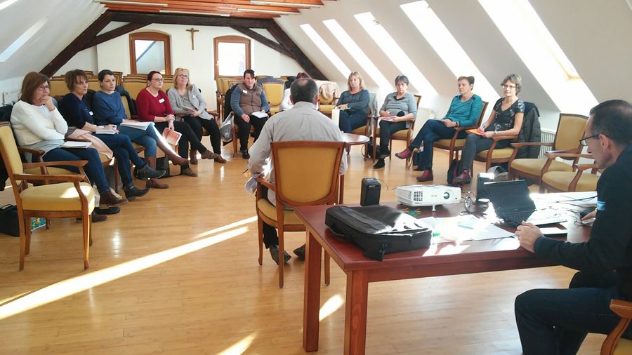Dr. Demeter Gáborné, egyetemi adjunktus, a BMPSZ Pécsi Tagintézményének gyógypedagógusa 2019. május 6-án előadást tartott a sajátos nevelési igényű tanulók számára készített egyéni fejlesztési tervről, kiemelve az egyéni, személyes bánásmódot. Az előadás után lehetőség nyílt konzultációra, az egyházmegyei intézményeiben felmerülő problémák felvetésére.